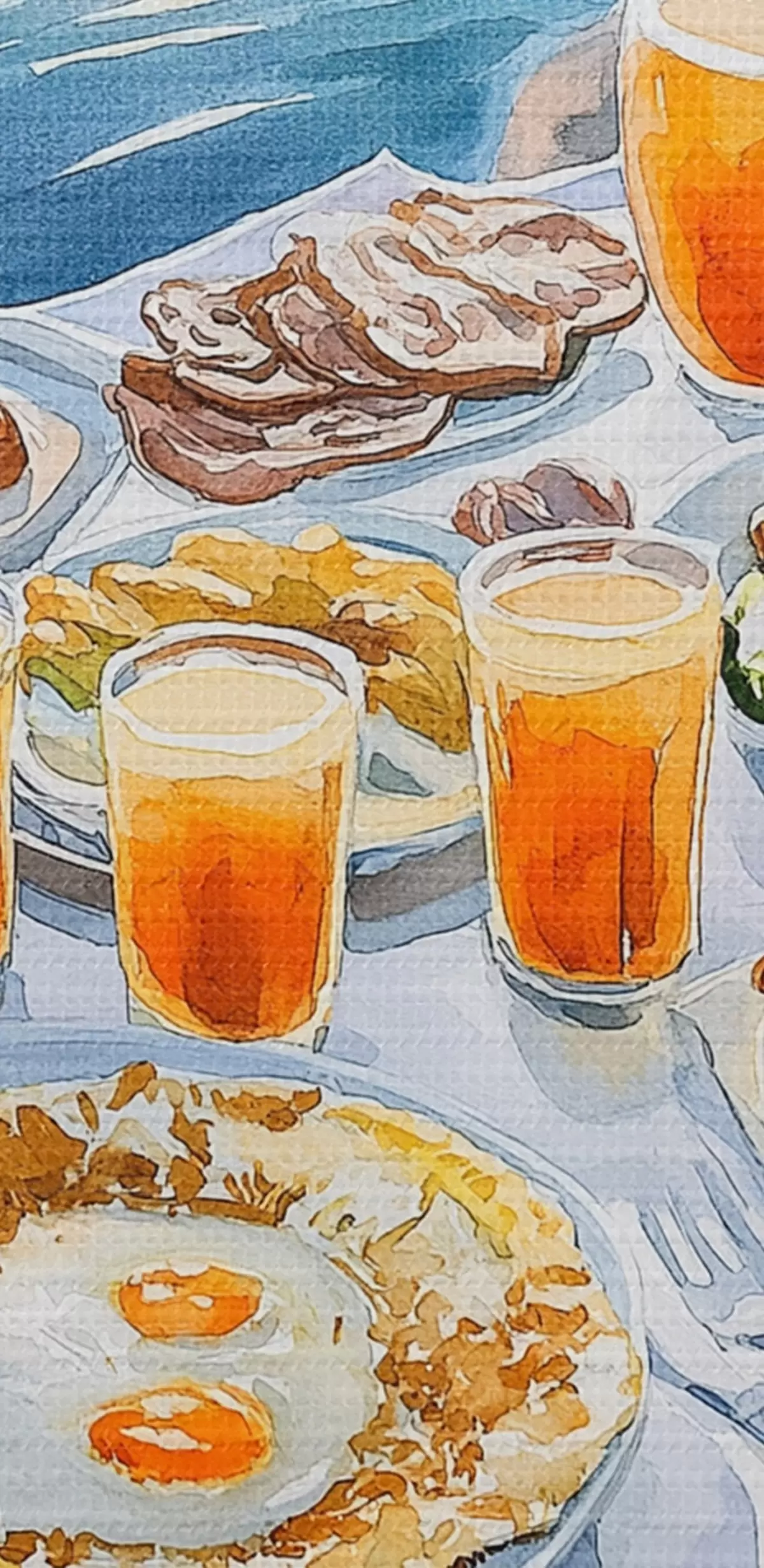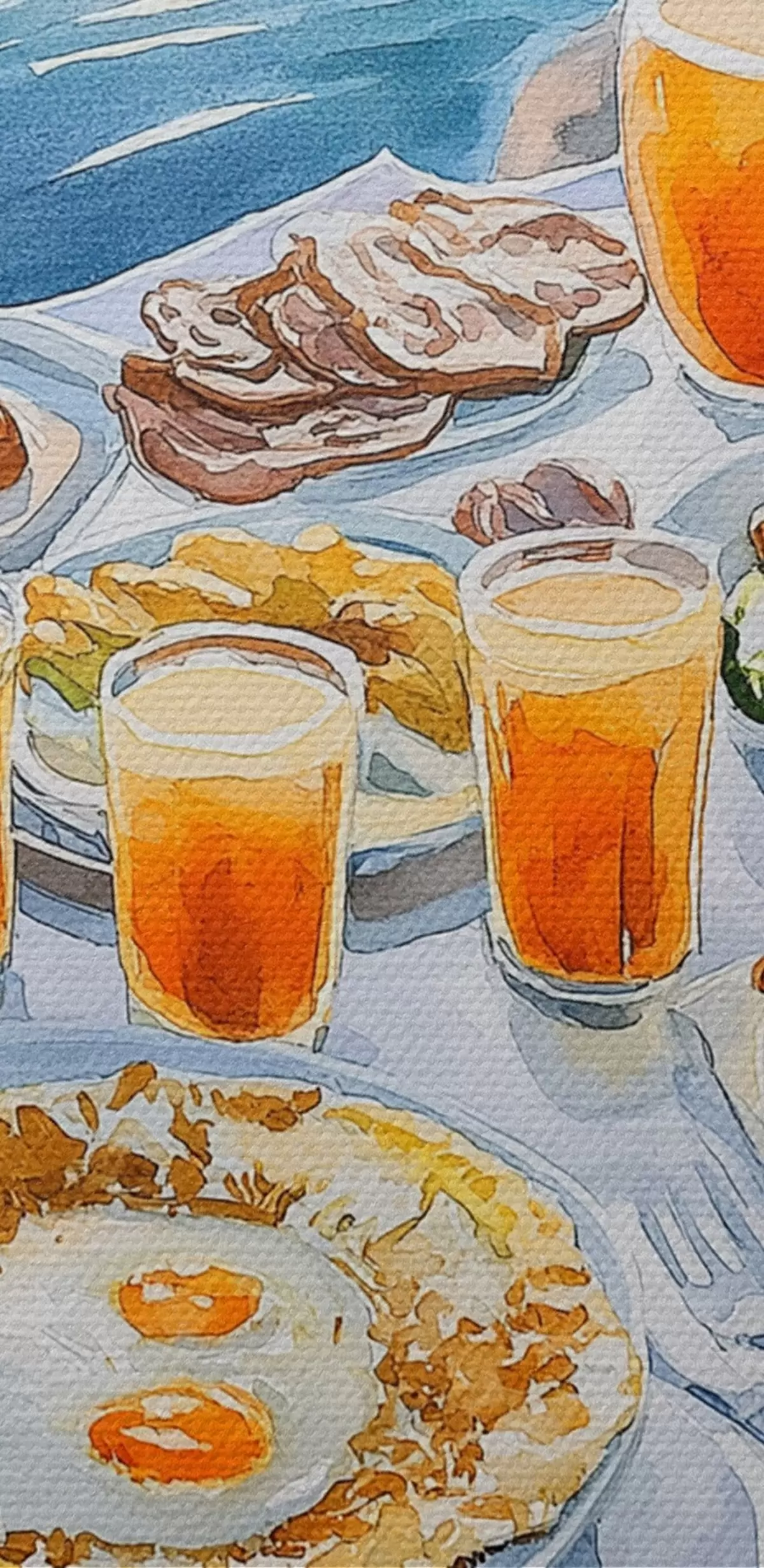 Obrázek Romantické povolání v Řecku, akvarel, snídaně, východ slunce Nr r42453