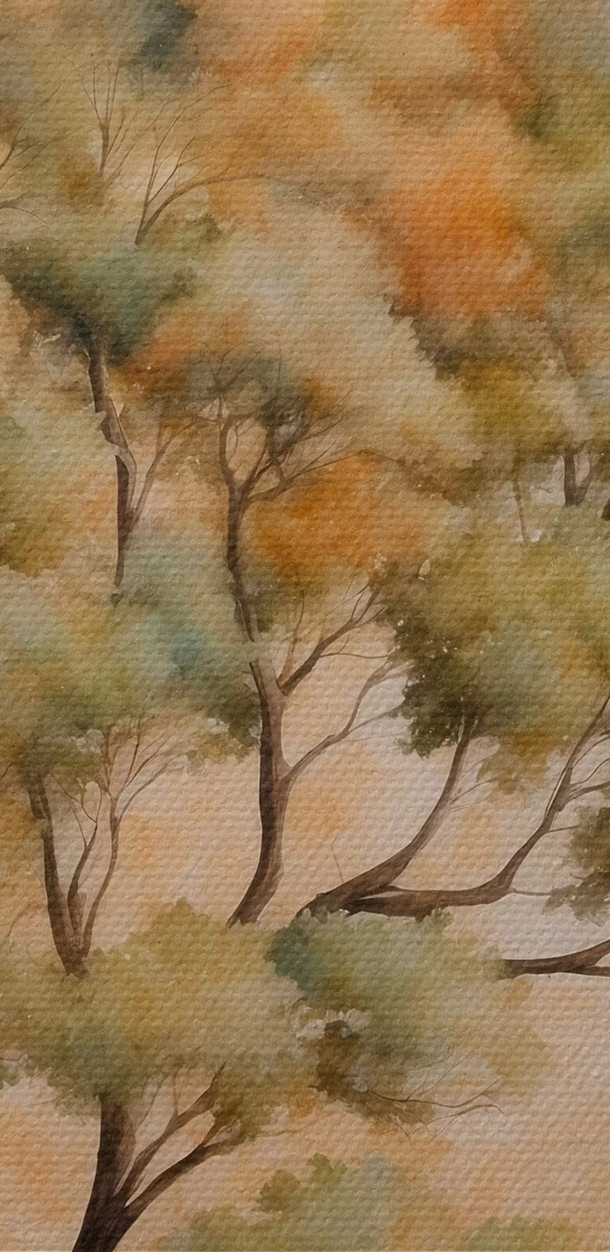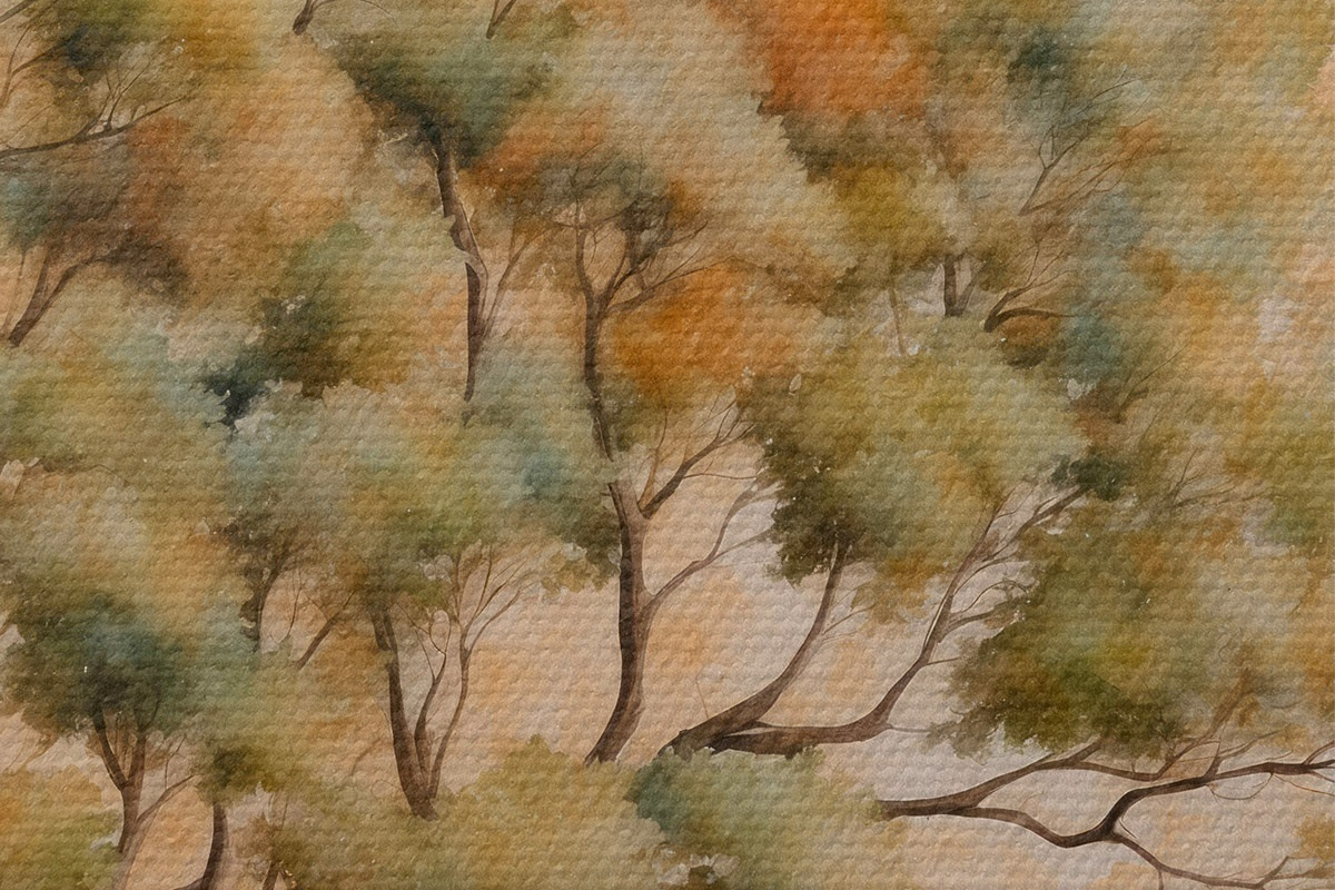 Obrázek Strom na oranžovém a bílém pozadí ve stylu akvarelové malby Nr r42514
