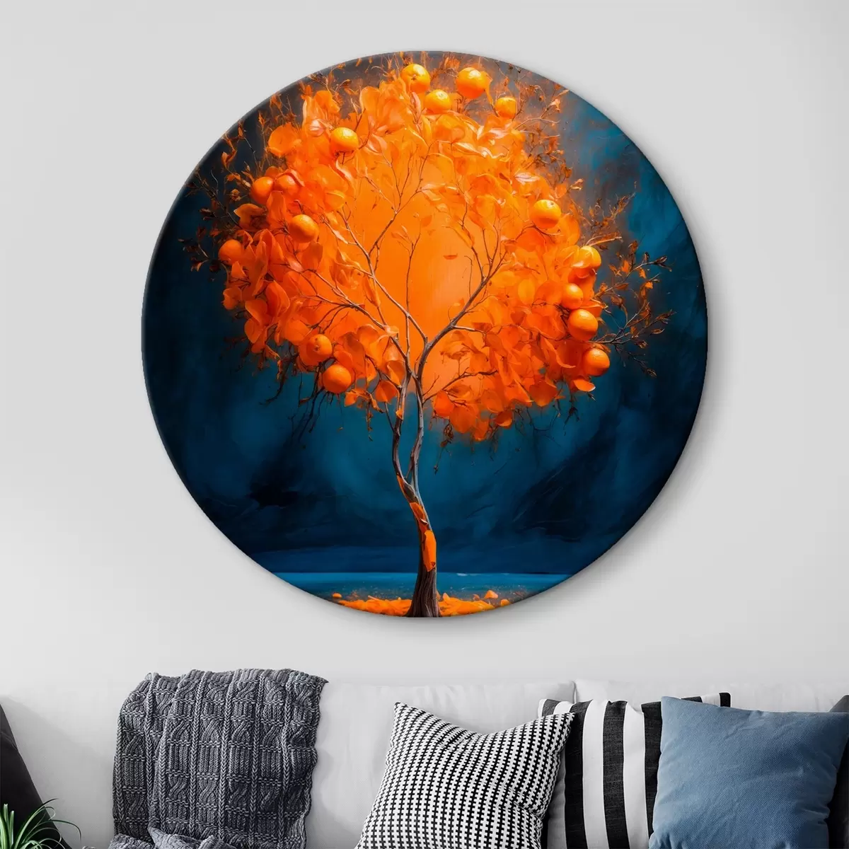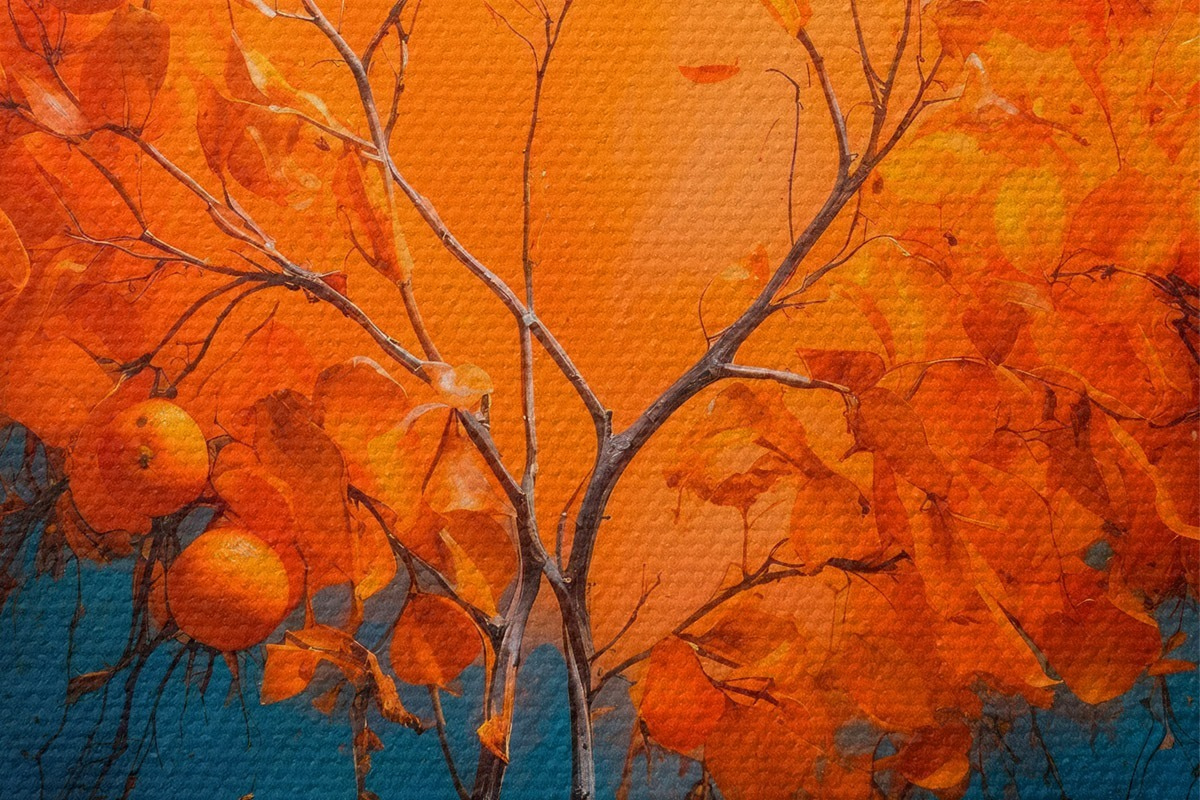 Obrázek Oranžový strom na modrém pozadí ve stylu akrylové malby Nr r42525
