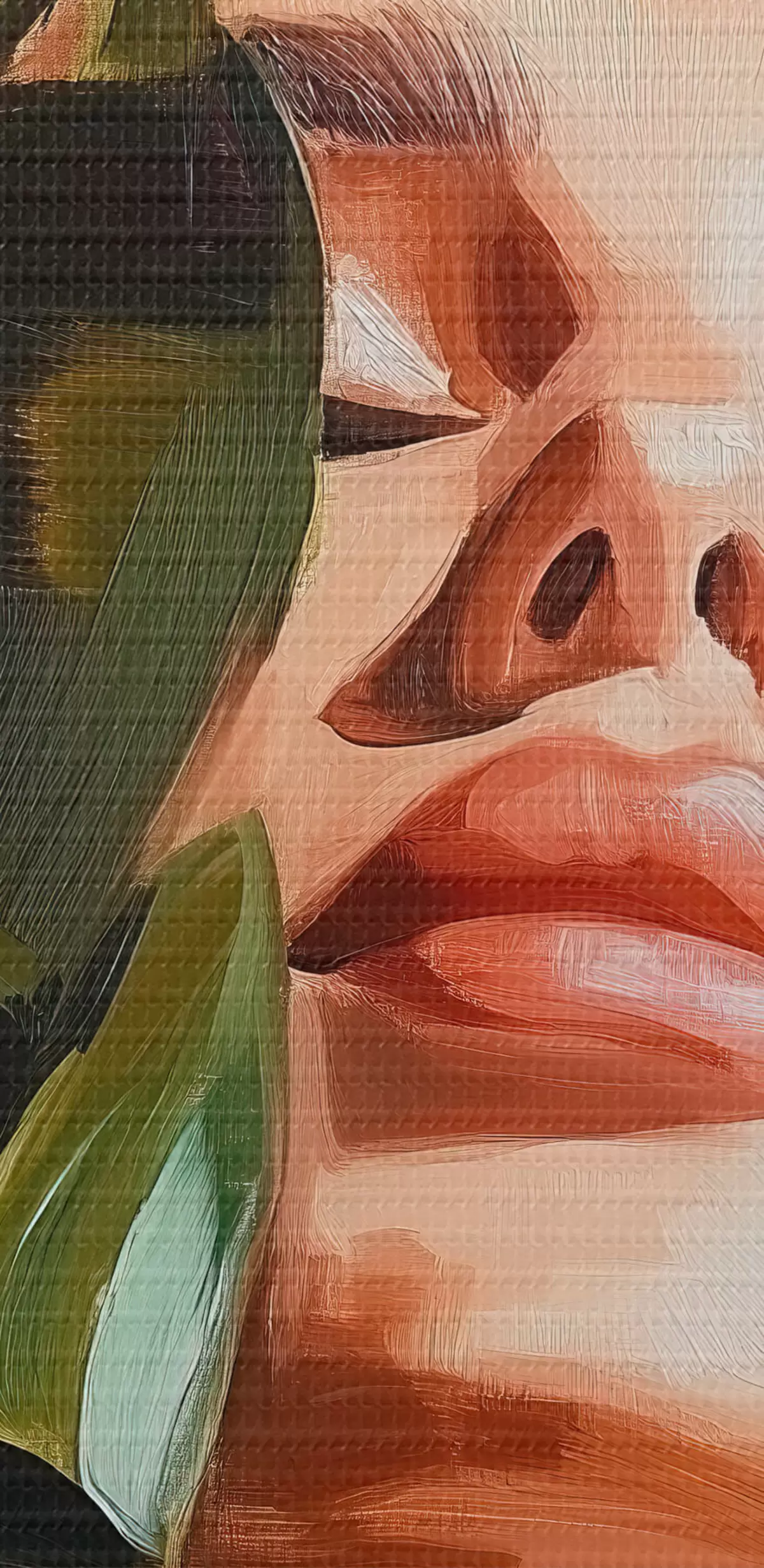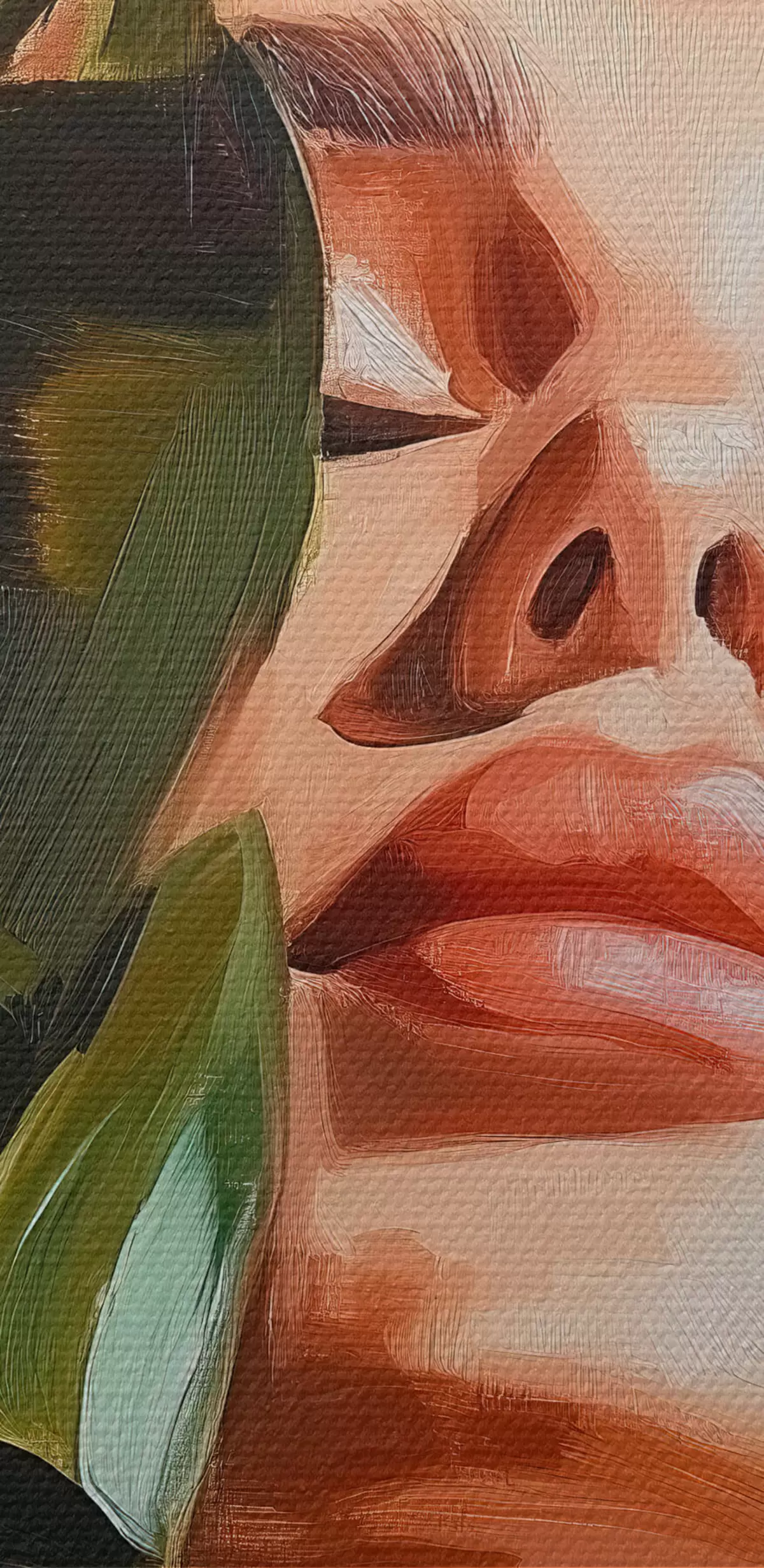 Obrázek Portrét ženy s listem monstery s imitací tahů štětcem Nr r42597