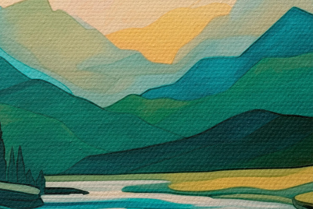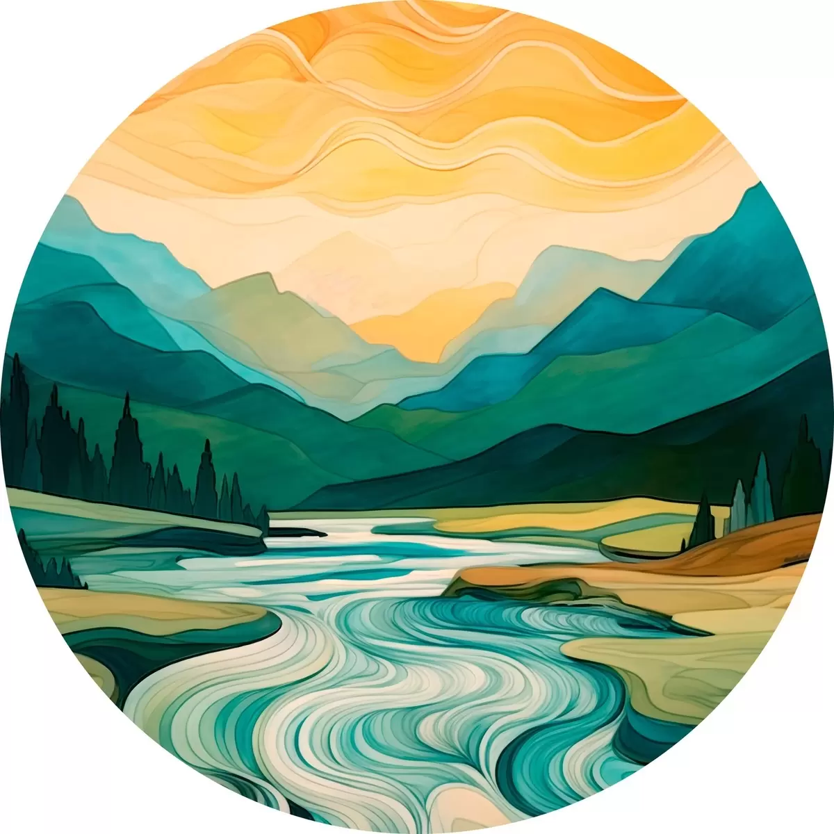 Obrázek Krajina s řekou v abstraktním stylu Nr r42652