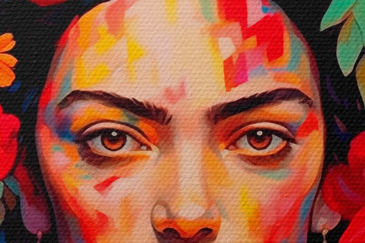 Obrázek Portrét ženy s květinovým rámem v jasném abstraktním stylu Nr r42653