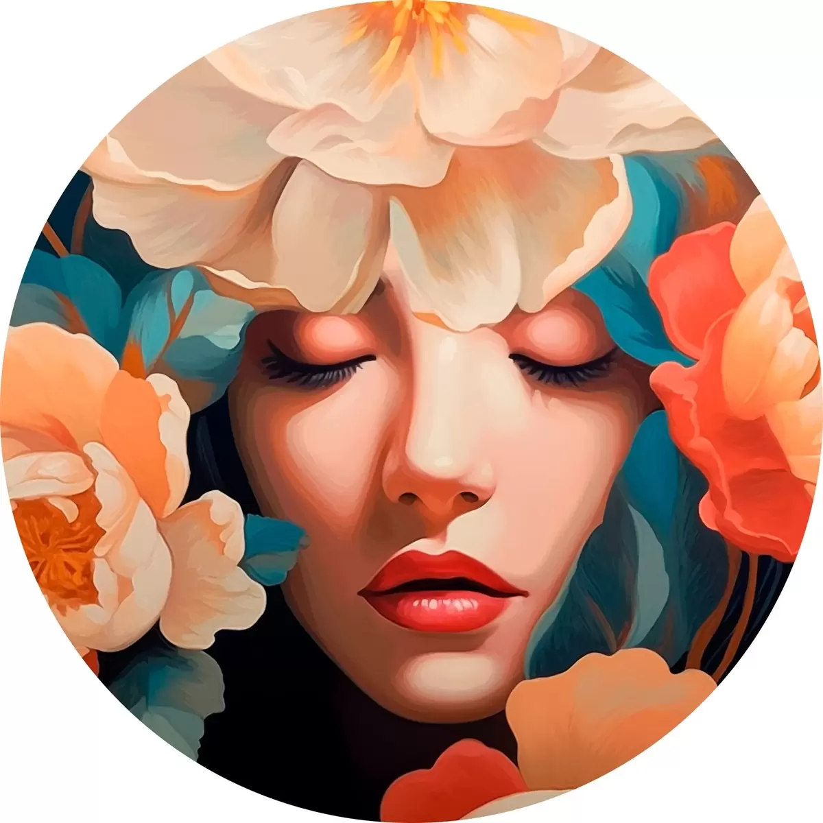 Obrázek Ženský portrét s květinami Nr r42659