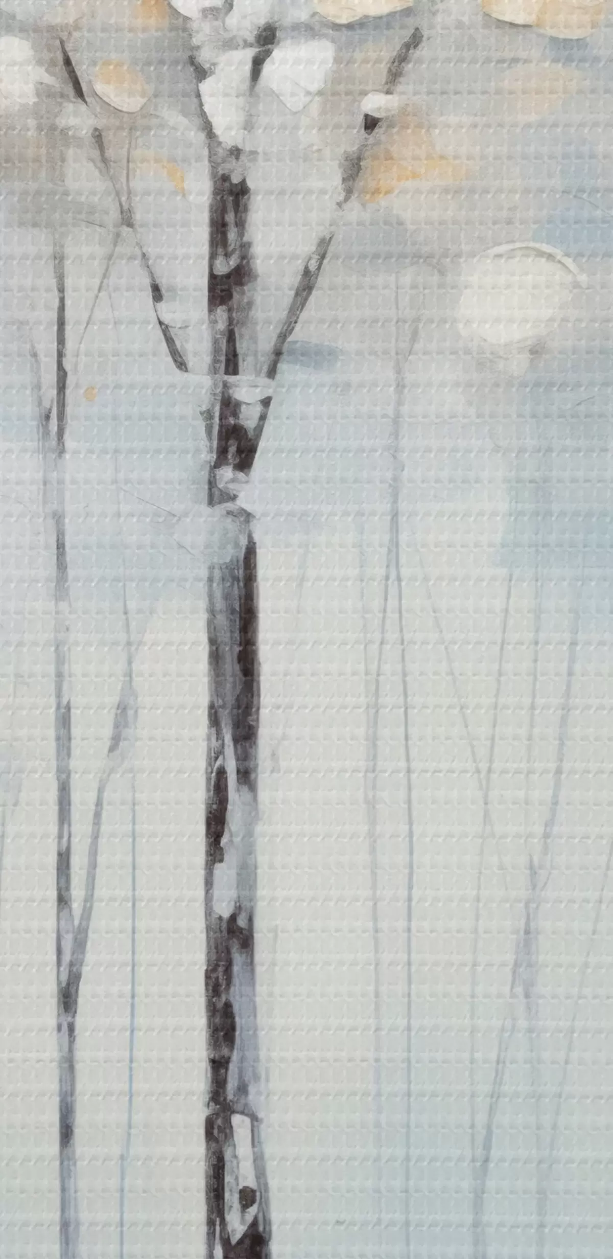 Obrázek Vysoké, štíhlé stromy s modrými listy a žlutým nádechem na jemném modrém pozadí, imitace olejomalby Nr r42731