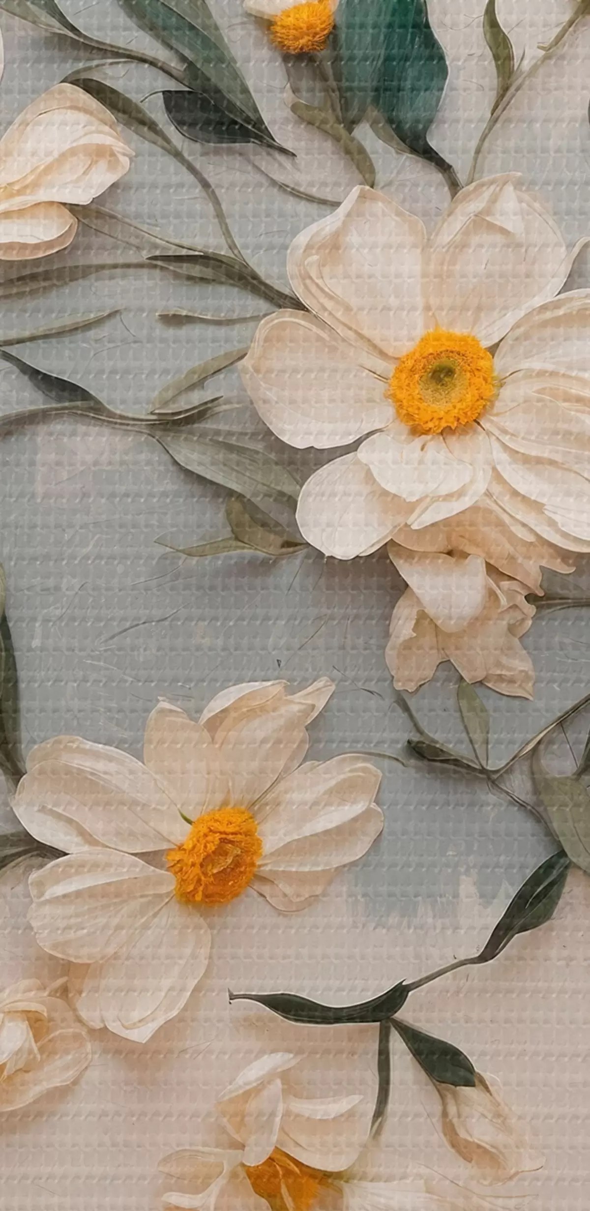Obrázek Bílé květy a listy na bílém a šedém pozadí Nr r42764