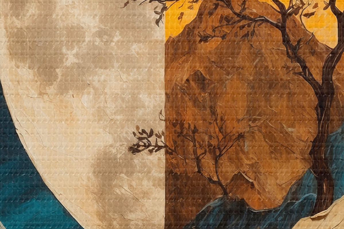 Obrázek Pestrobarevné hory na měsíčním pozadí ve stylu akrylové malby Nr r42770