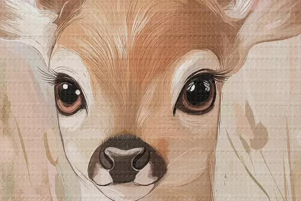 Obrázek Malá srnka na letní louce, kresba akrylem, pastelově růžové a béžové barvy Nr r42781