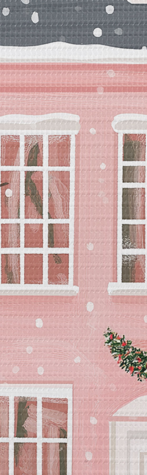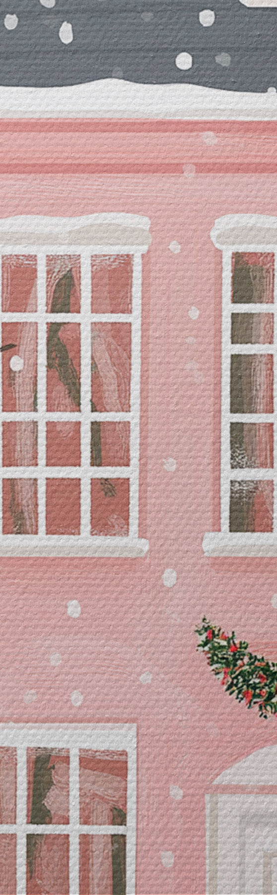 Obrázek Roztomilé růžové domy, borovice, zimní krajina Nr r42791