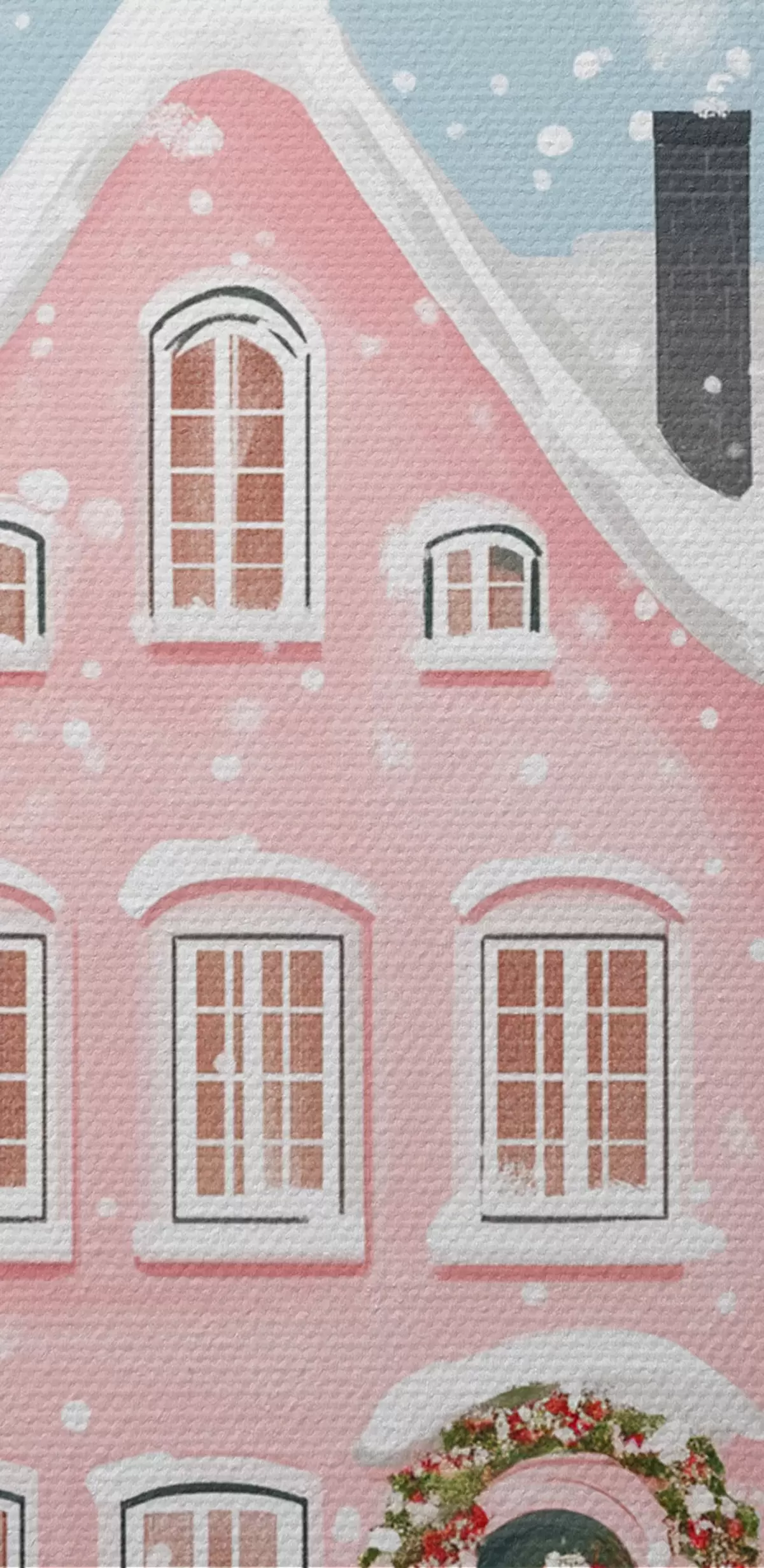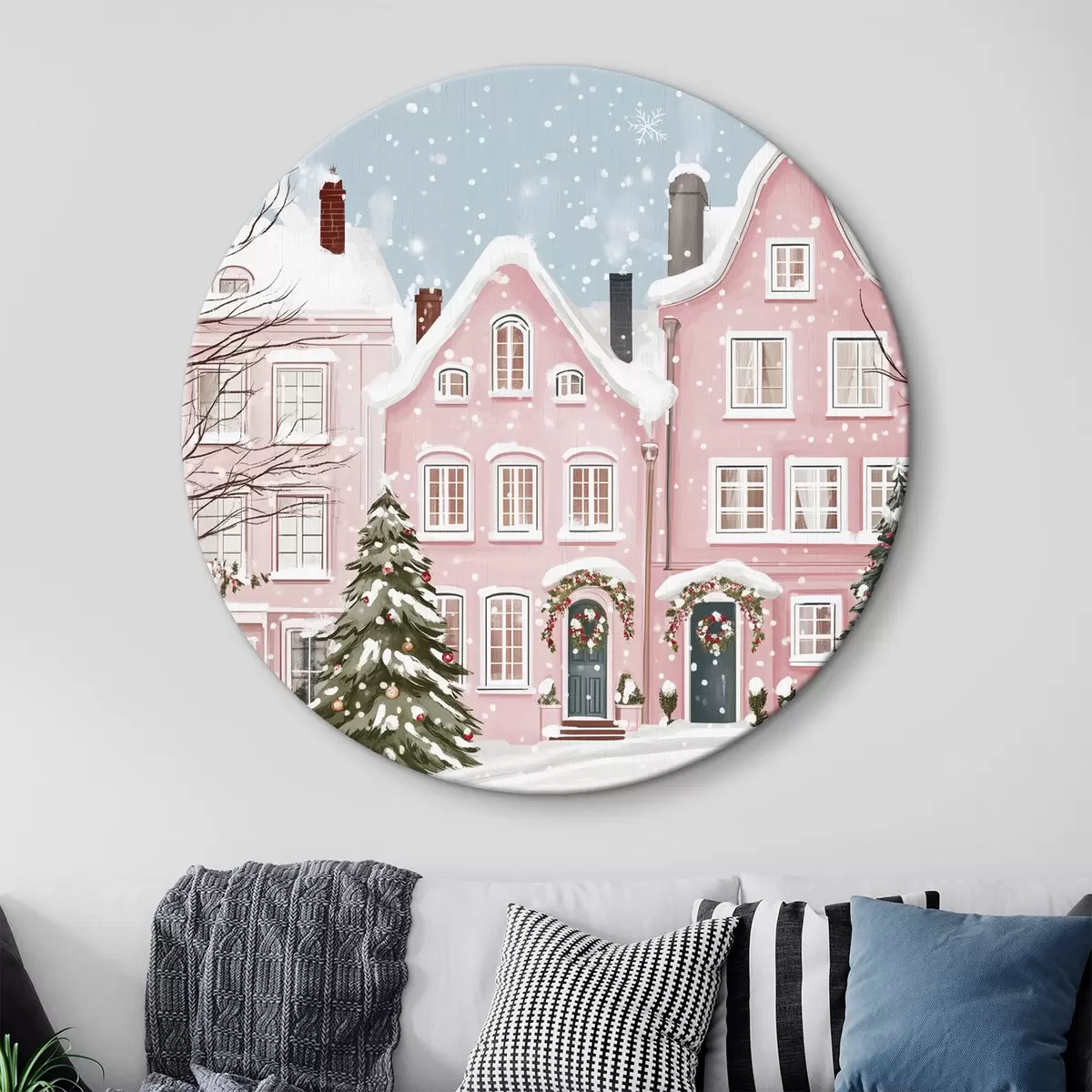 Obrázek Krásné město s roztomilými růžovými domy, zimní estetikou, sněhovými vločkami Nr r42793