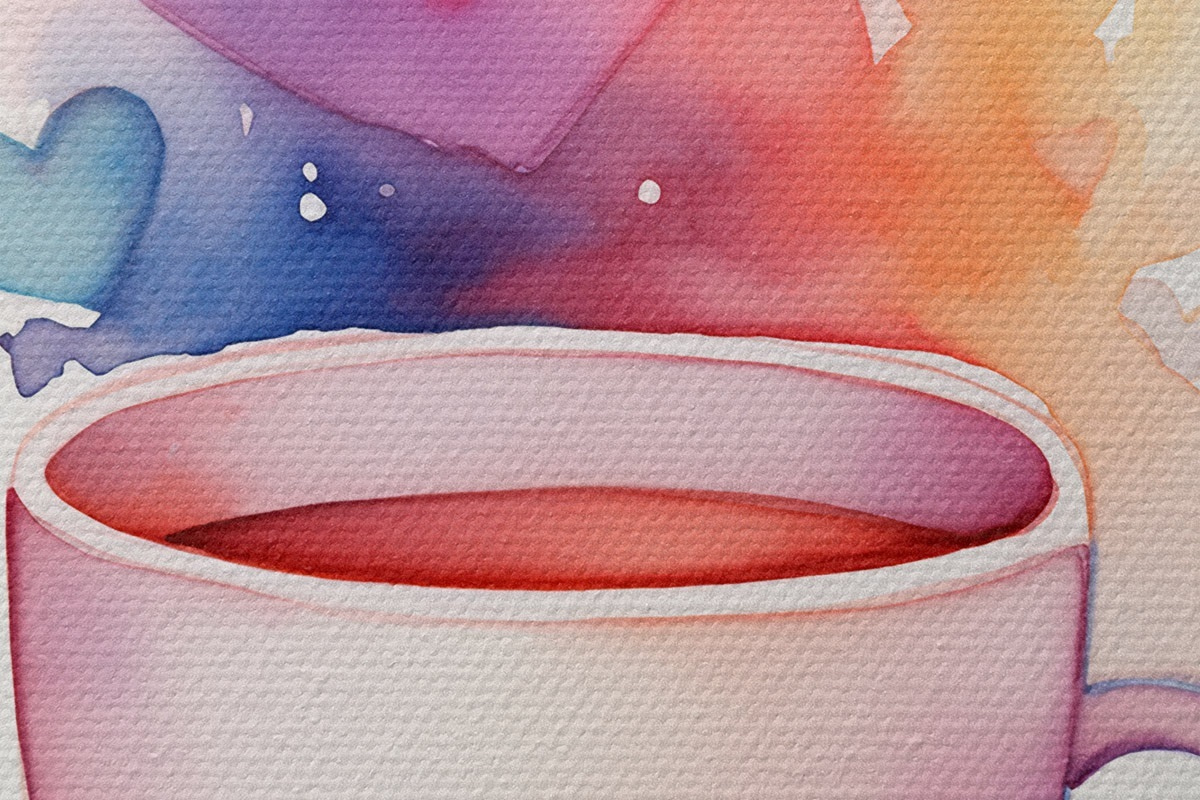 Obrázek Šálek na pozadí akvarelových srdcí Nr r42869