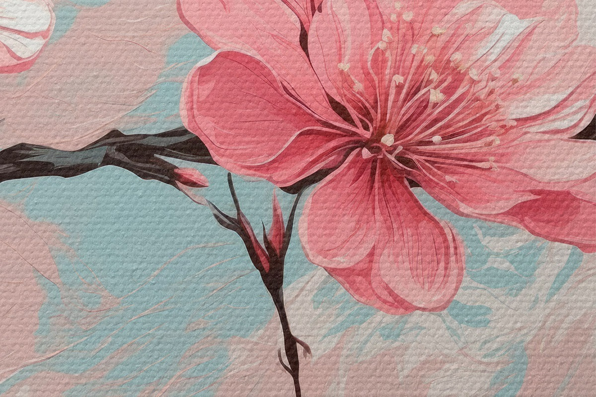 Obrázek Růžové květy a stonky ve stylu akrylové malby Nr r42918