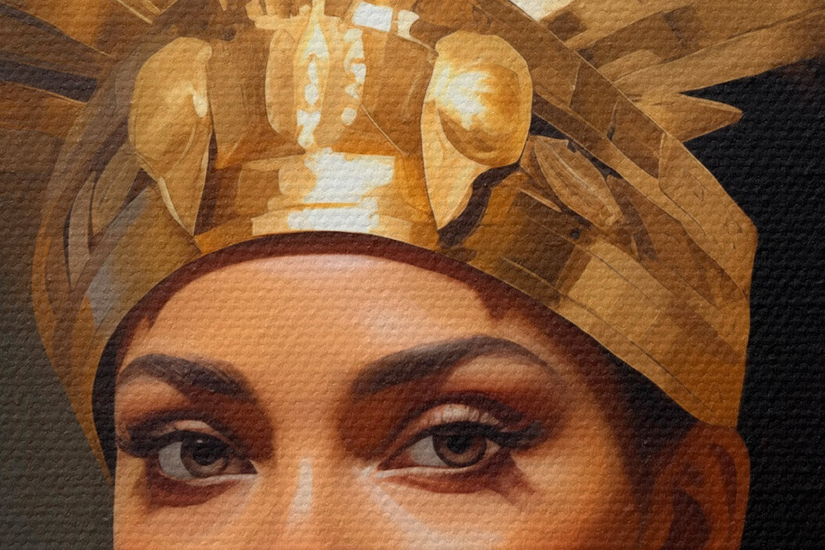 Obrázek Portrét ženy s majestátní pokrývkou hlavy a tradičními ozdobami Nr r42931