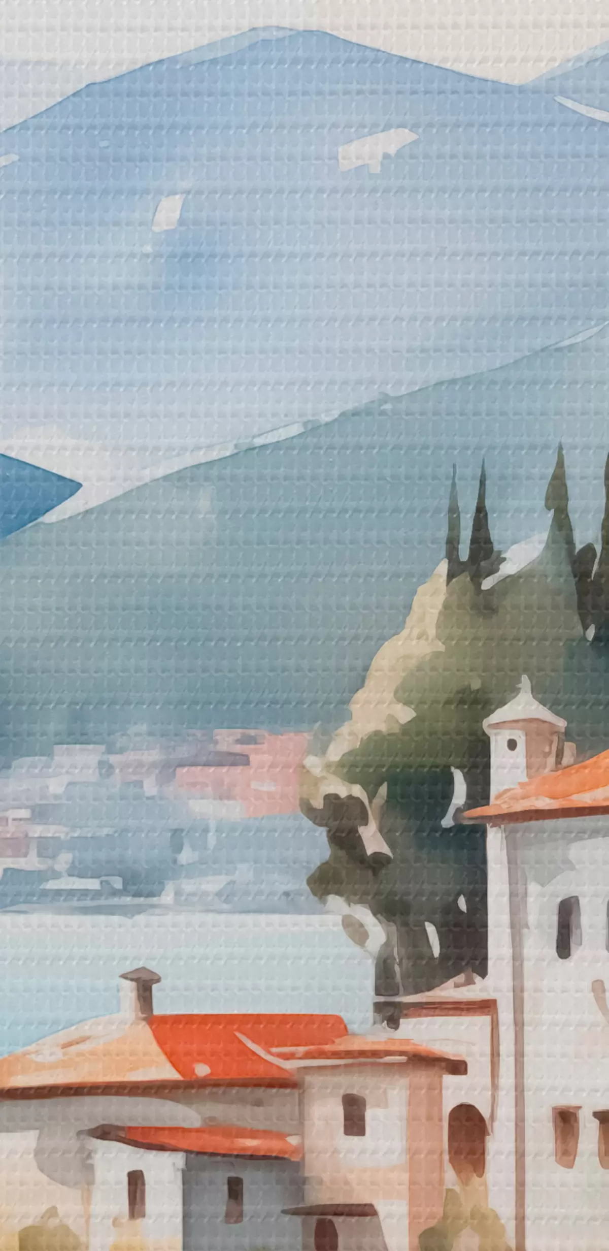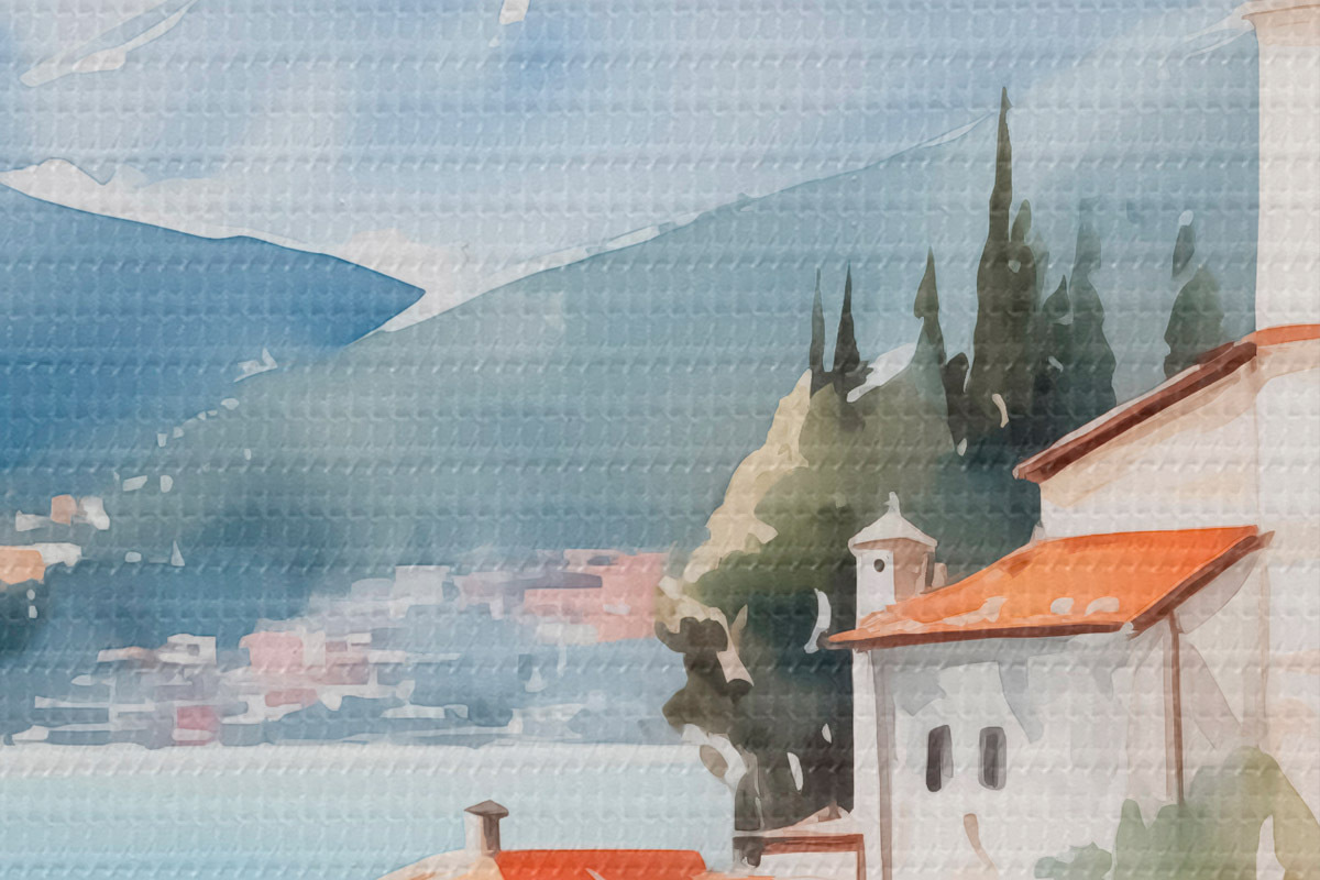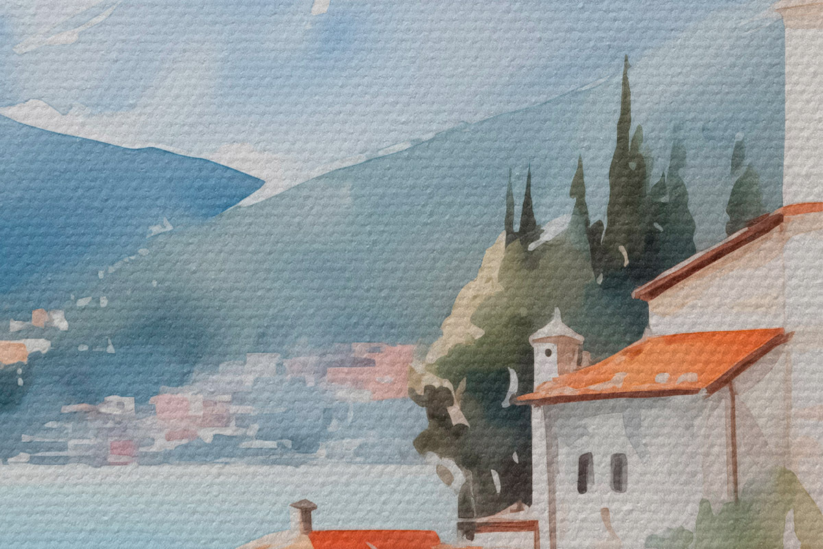 Obrázek Kostel u moře s horami v pozadí Nr r42962