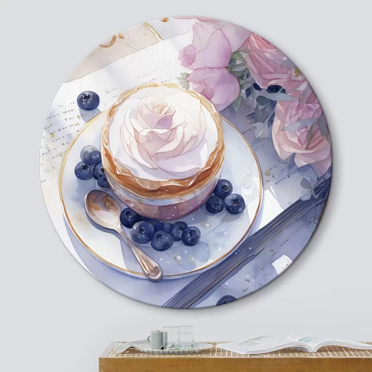 Obrázek Borůvkový dortík, boho styl, akvarel, růžové růže, poetický Nr r43053