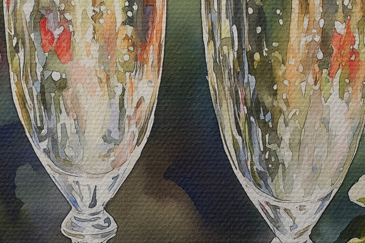 Obrázek Slavnostní a šumivé skleničky na šampaňské s jahodami na podnose Nr r43057