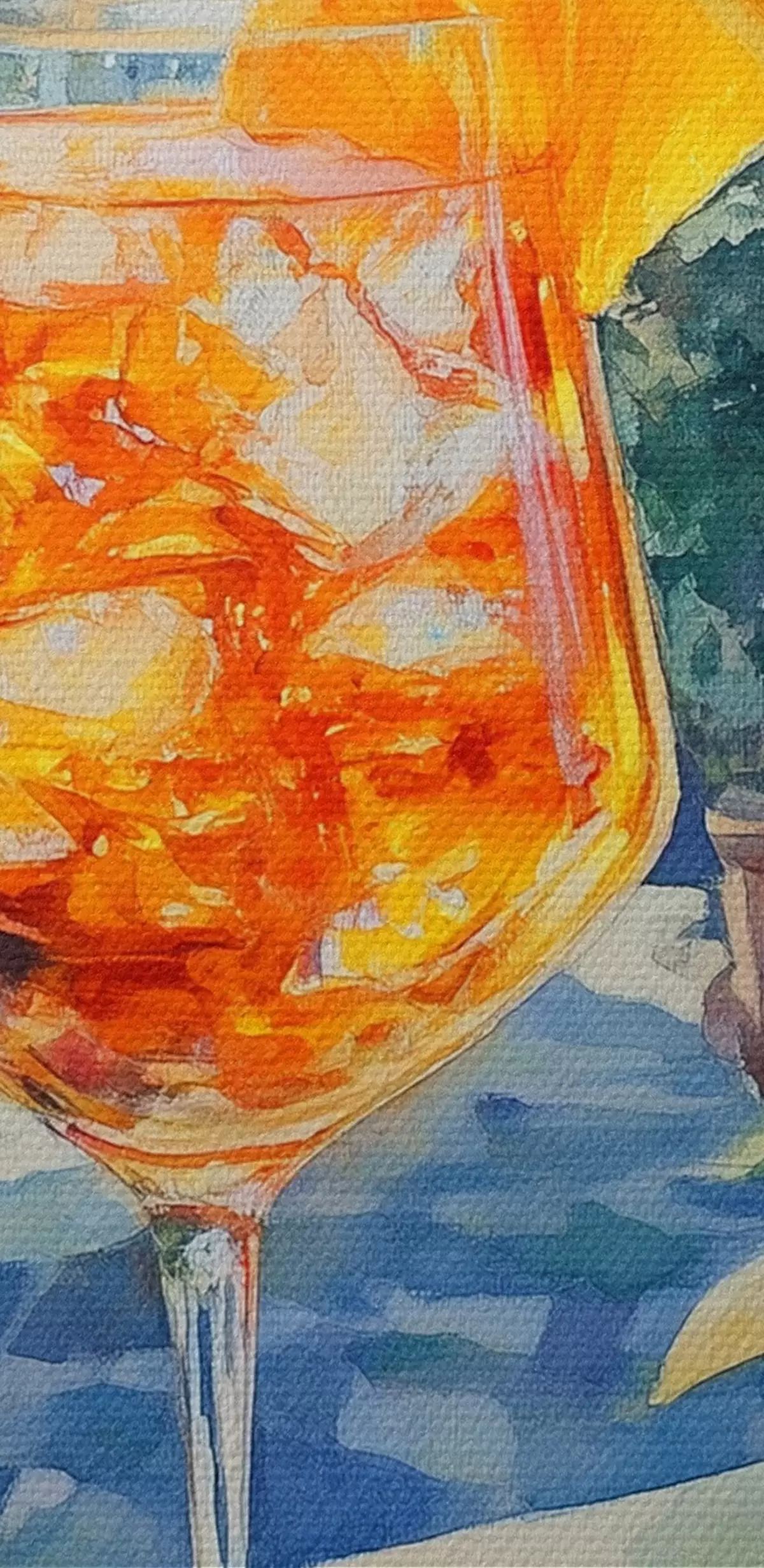 Obrázek Koktejl s pomeranči, akvarelový styl, Itálie, Aperol Spritz, architektura, letní zahrada Nr r43061