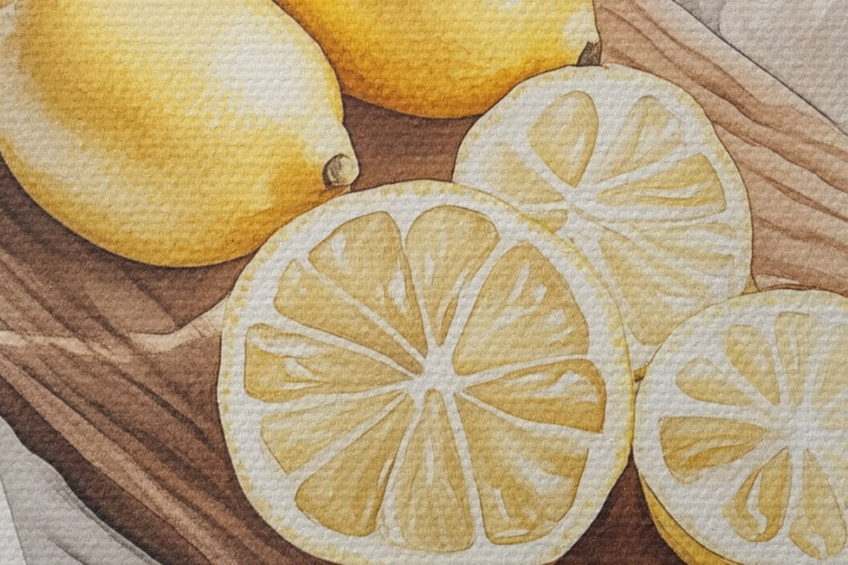 Obrázek Citrony na dřevěné desce, akvarel, rustikální styl Nr r43064