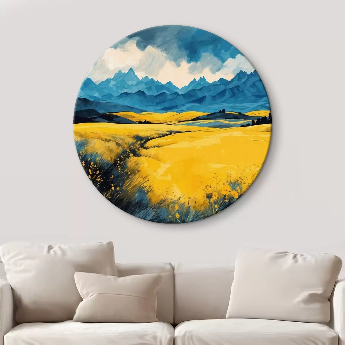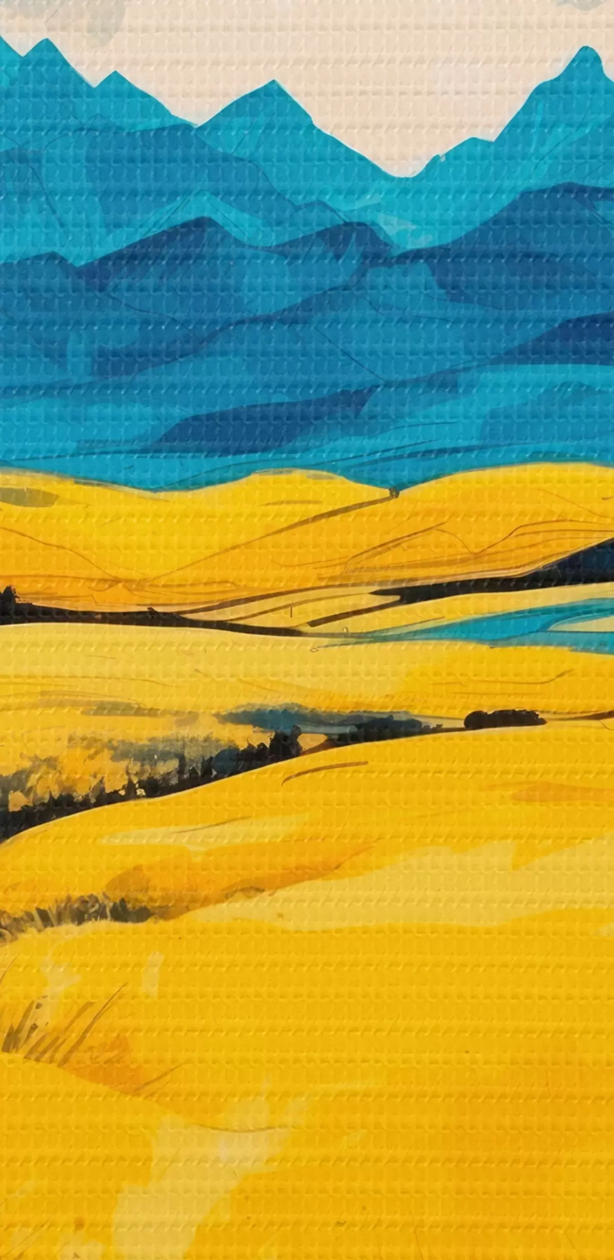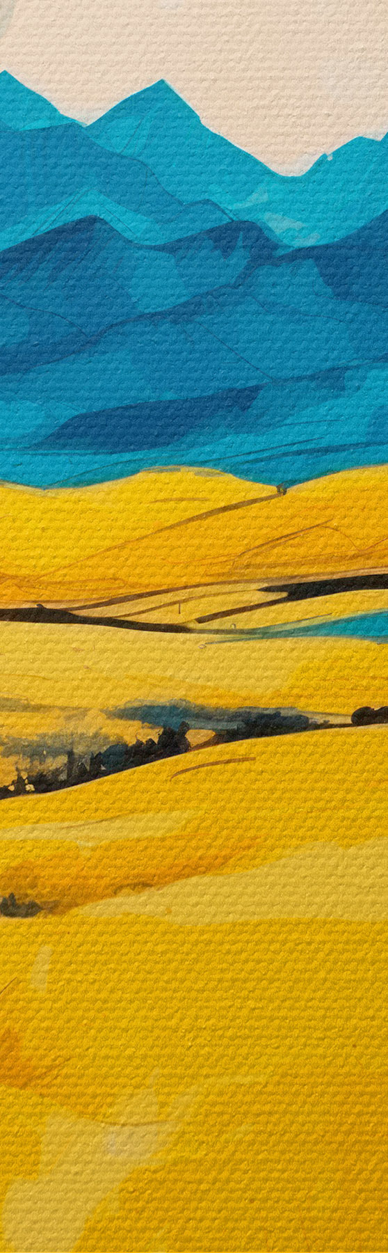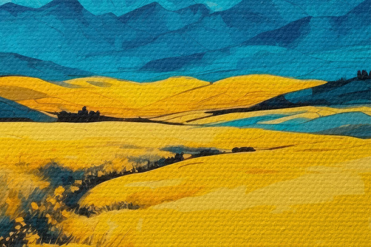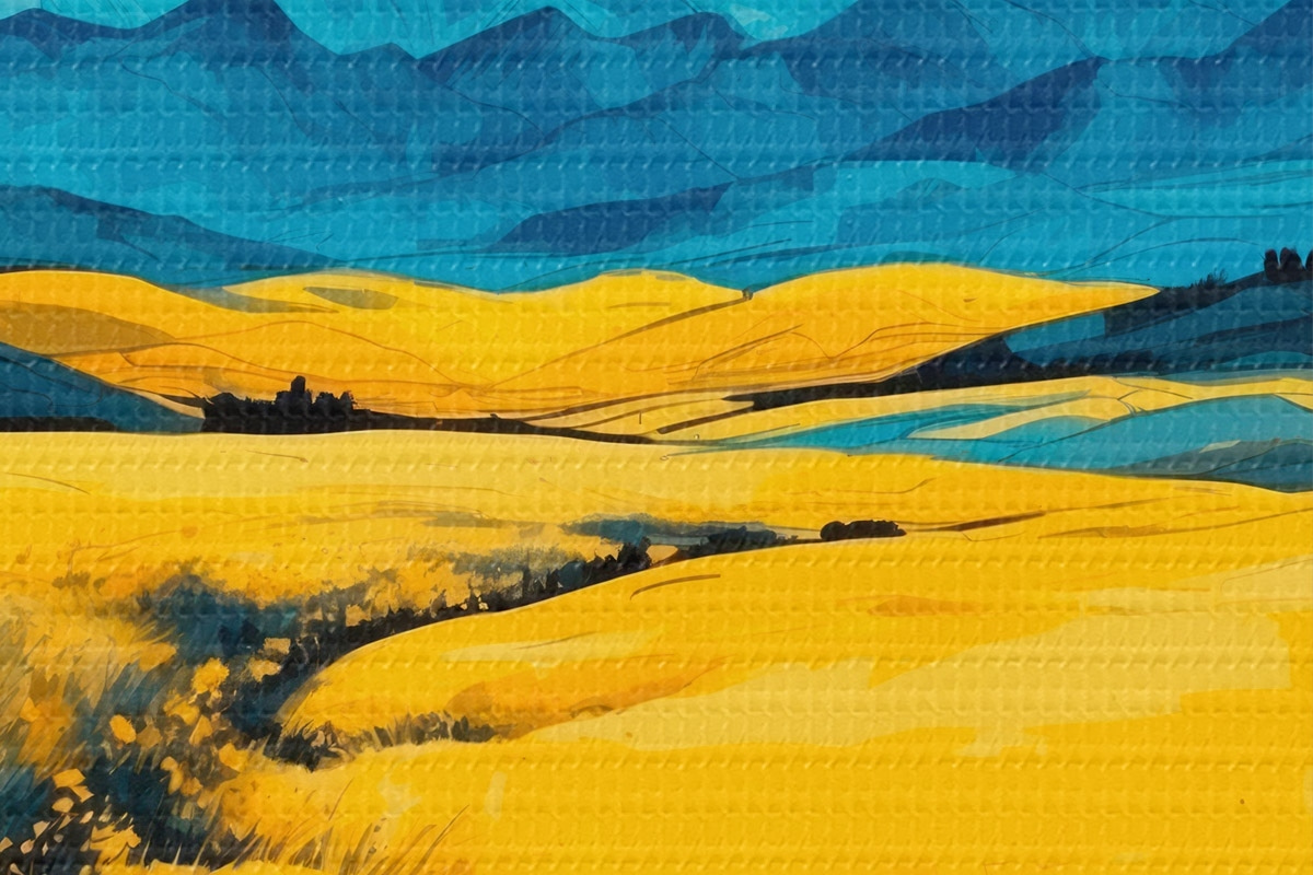 Obrázek Žluté pole na pozadí hor ve stylu akvarelové malby Nr r43117