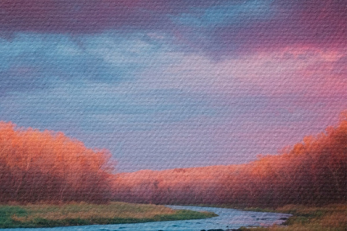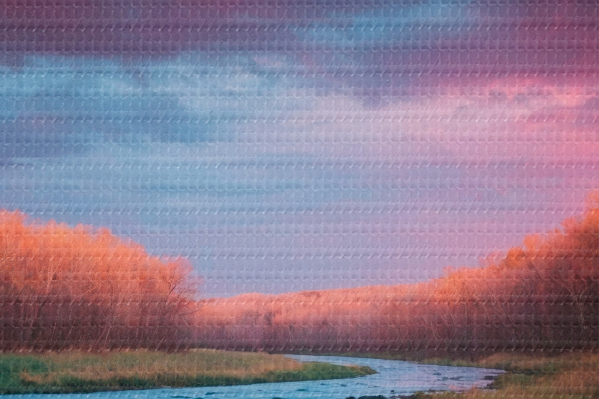 Obrázek Potok na poli na pozadí fialové oblohy Nr r43120