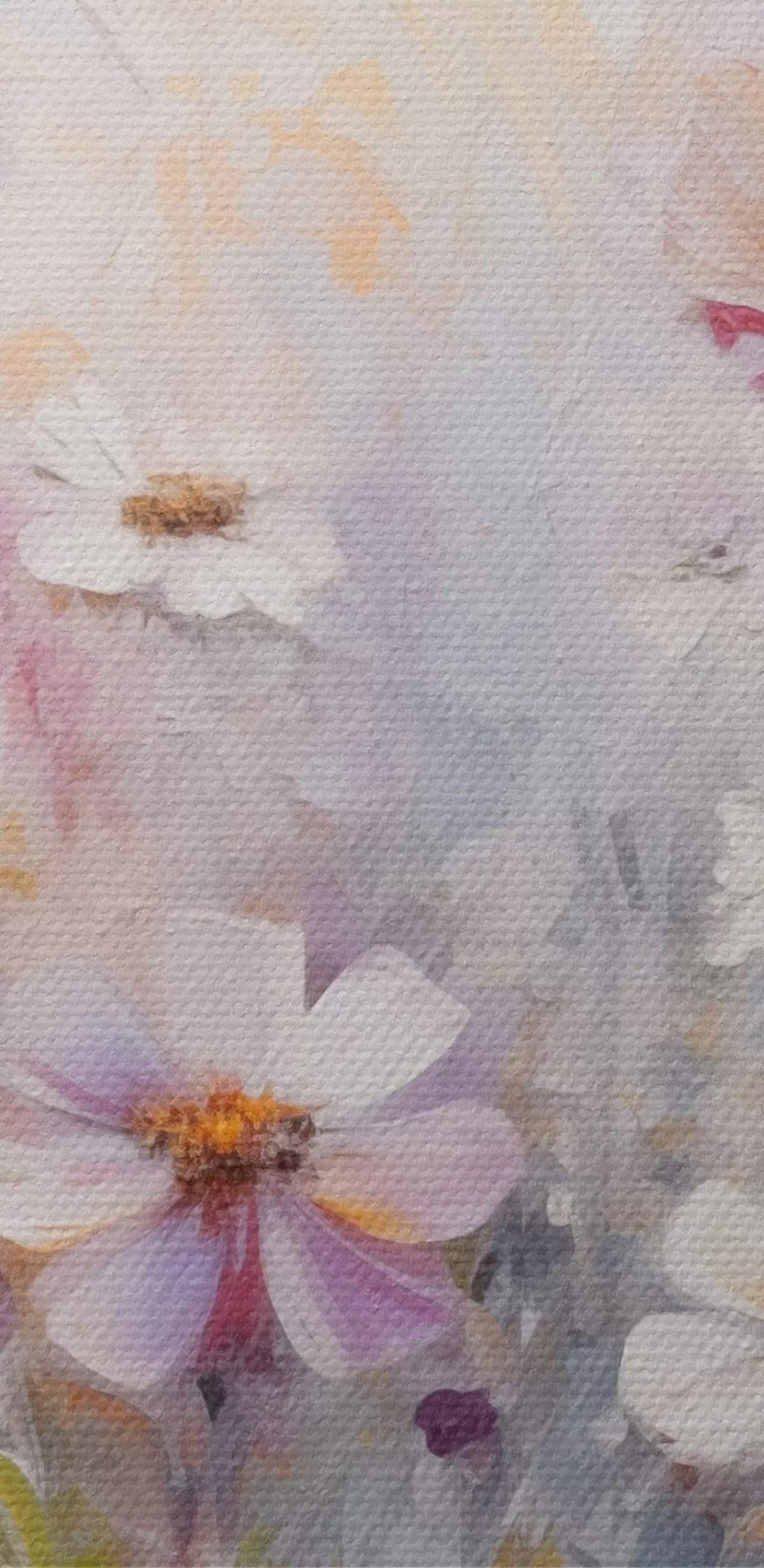 Obrázek Abstraktní texturované pole bílých a růžových květů, jemné pastelové barvy, jemné tahy štětcem, květinová louka Nr r43170