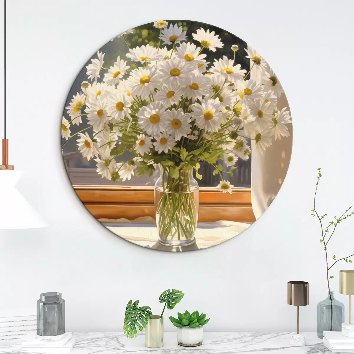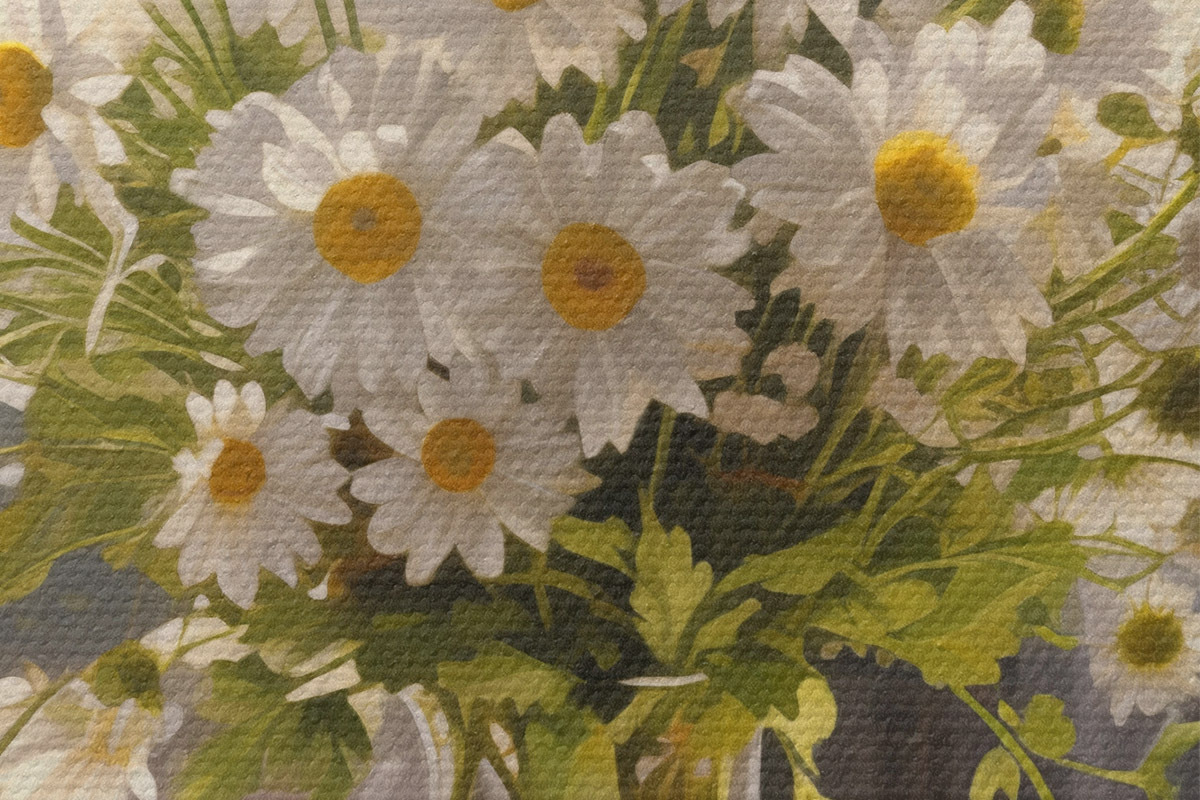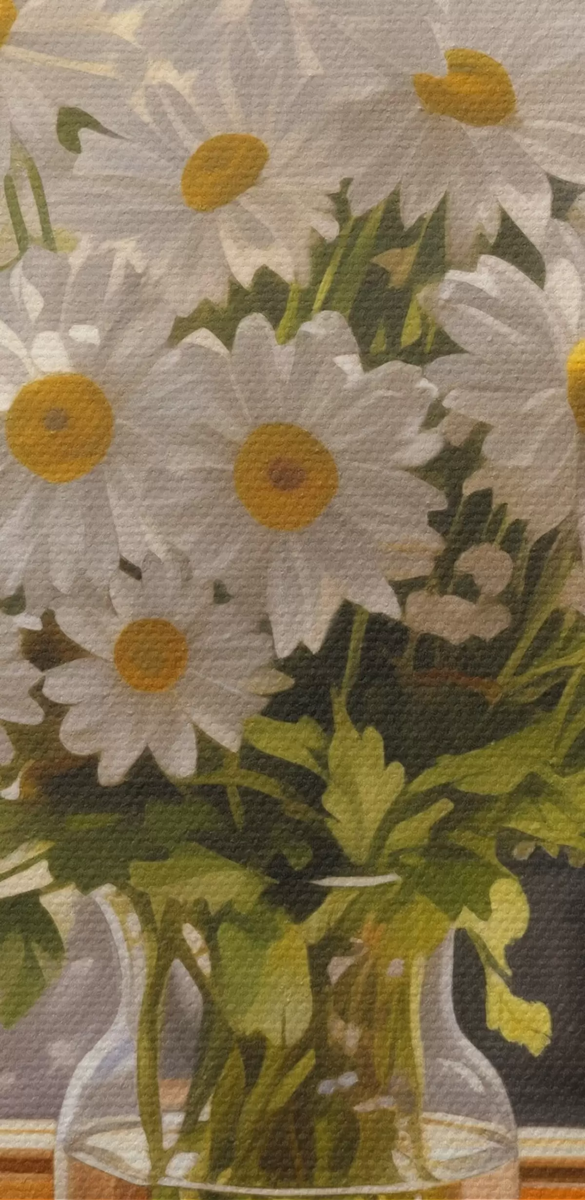 Obrázek Olejomalba imitace vázy s bílými sedmikráskami na parapetu, slunečný den, teplá paleta barev Nr r43171