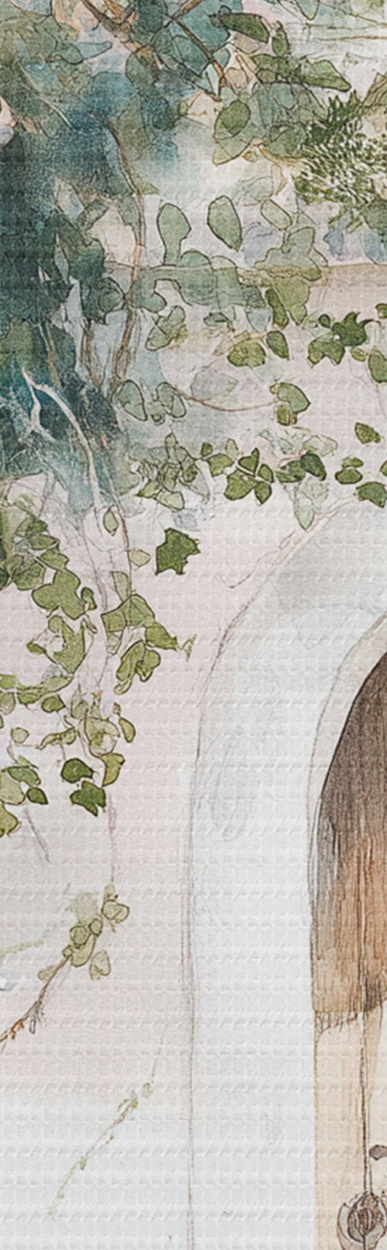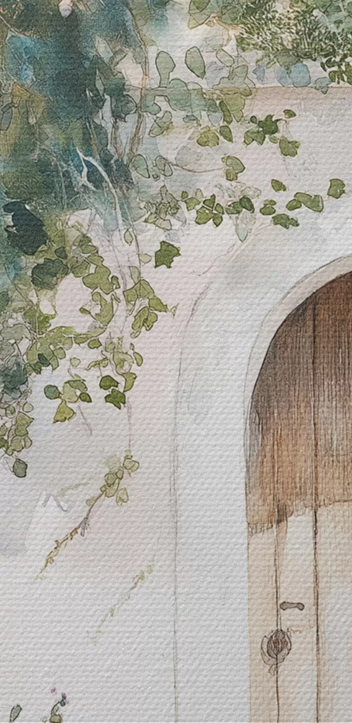 Obrázek Krásný bílý dům s kvetoucím stromem, středomořský, akvarelový styl Nr r43179