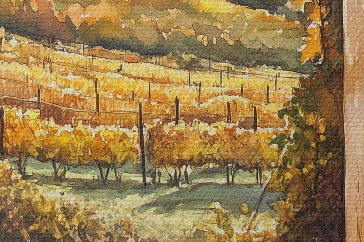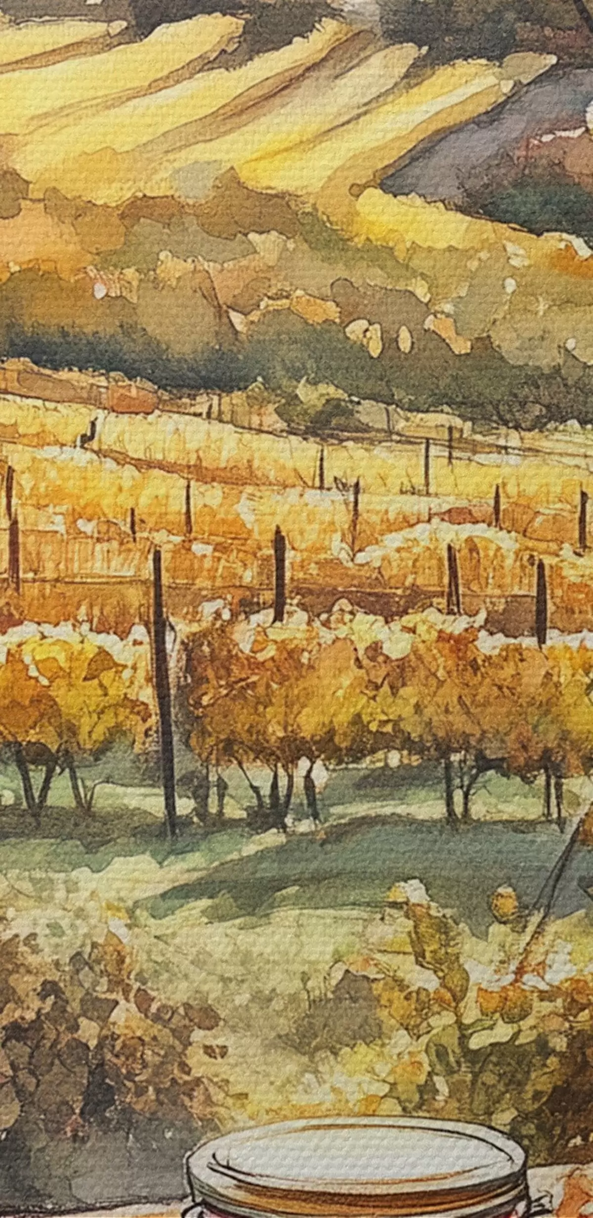 Obrázek Sklizeň v obci, rustikální, ovoce, džem, přírodní krajiny, akvarel styl Nr r43186
