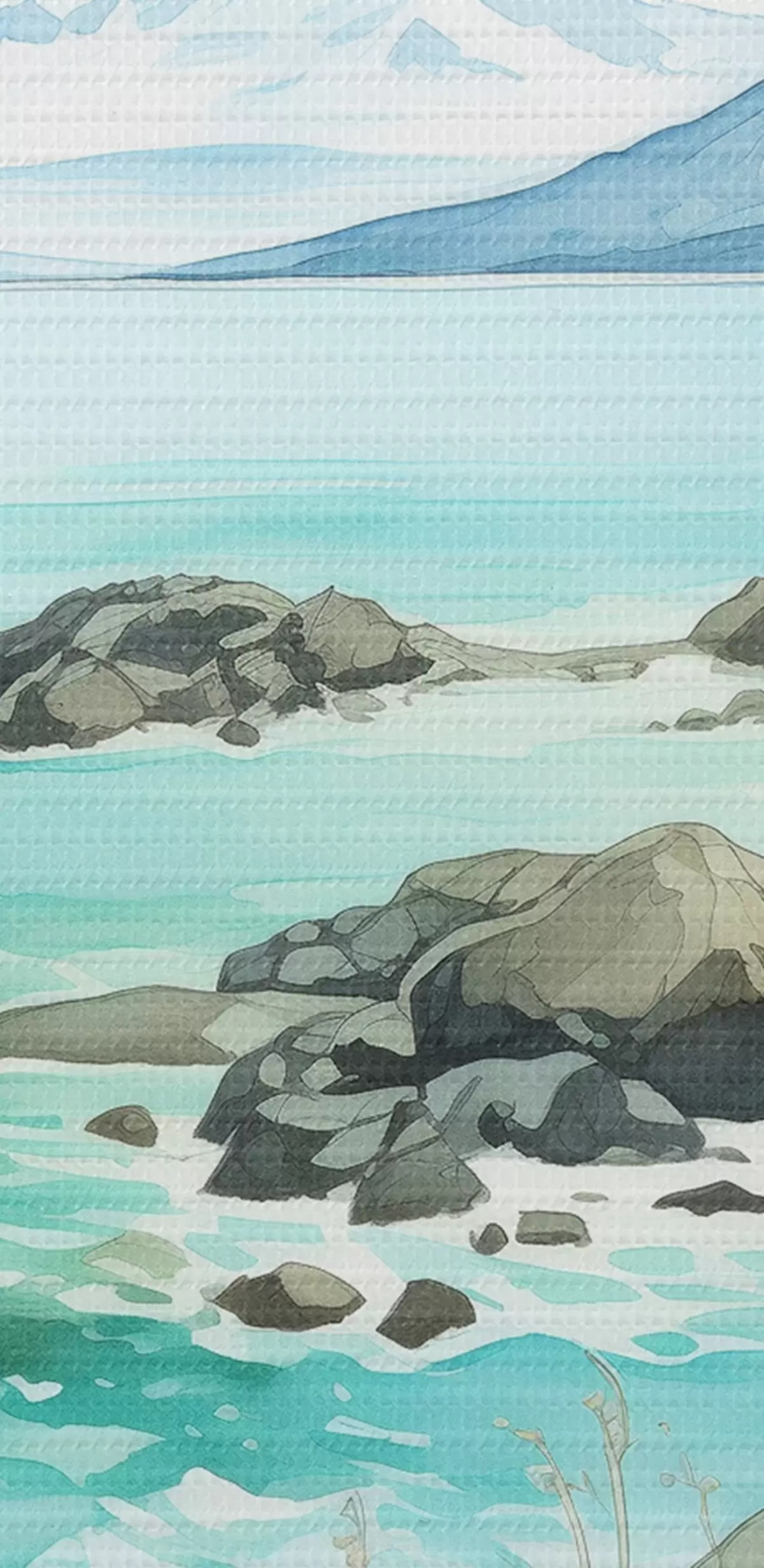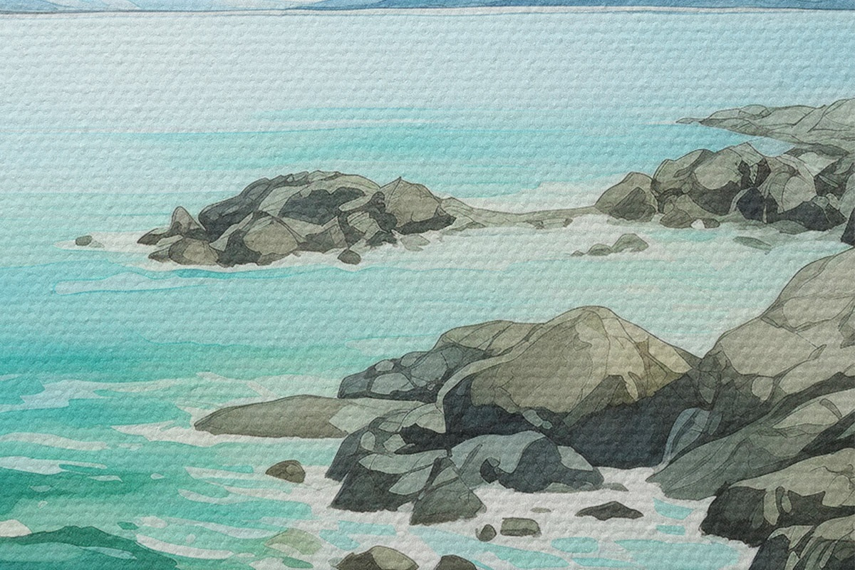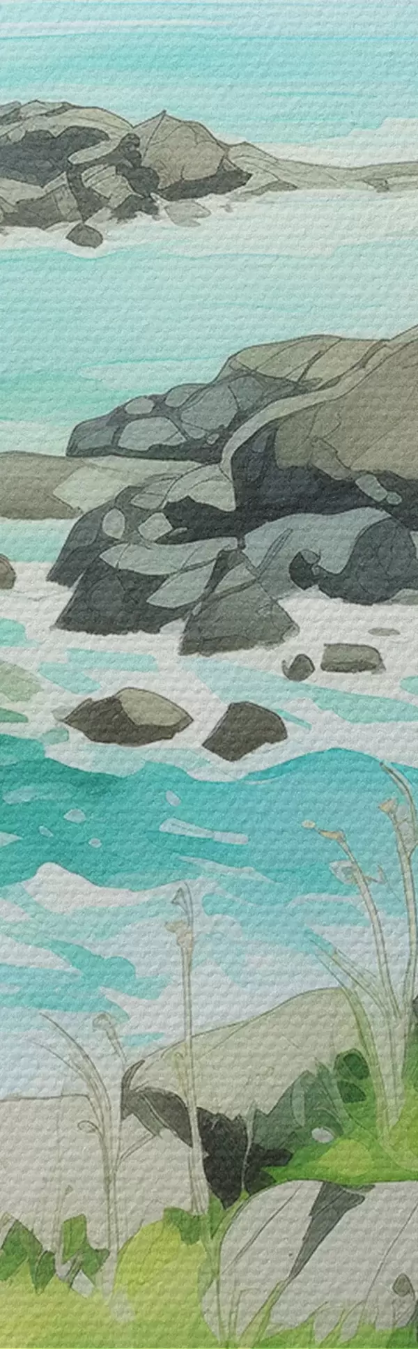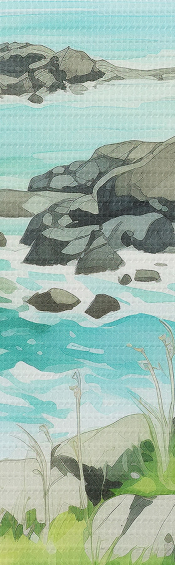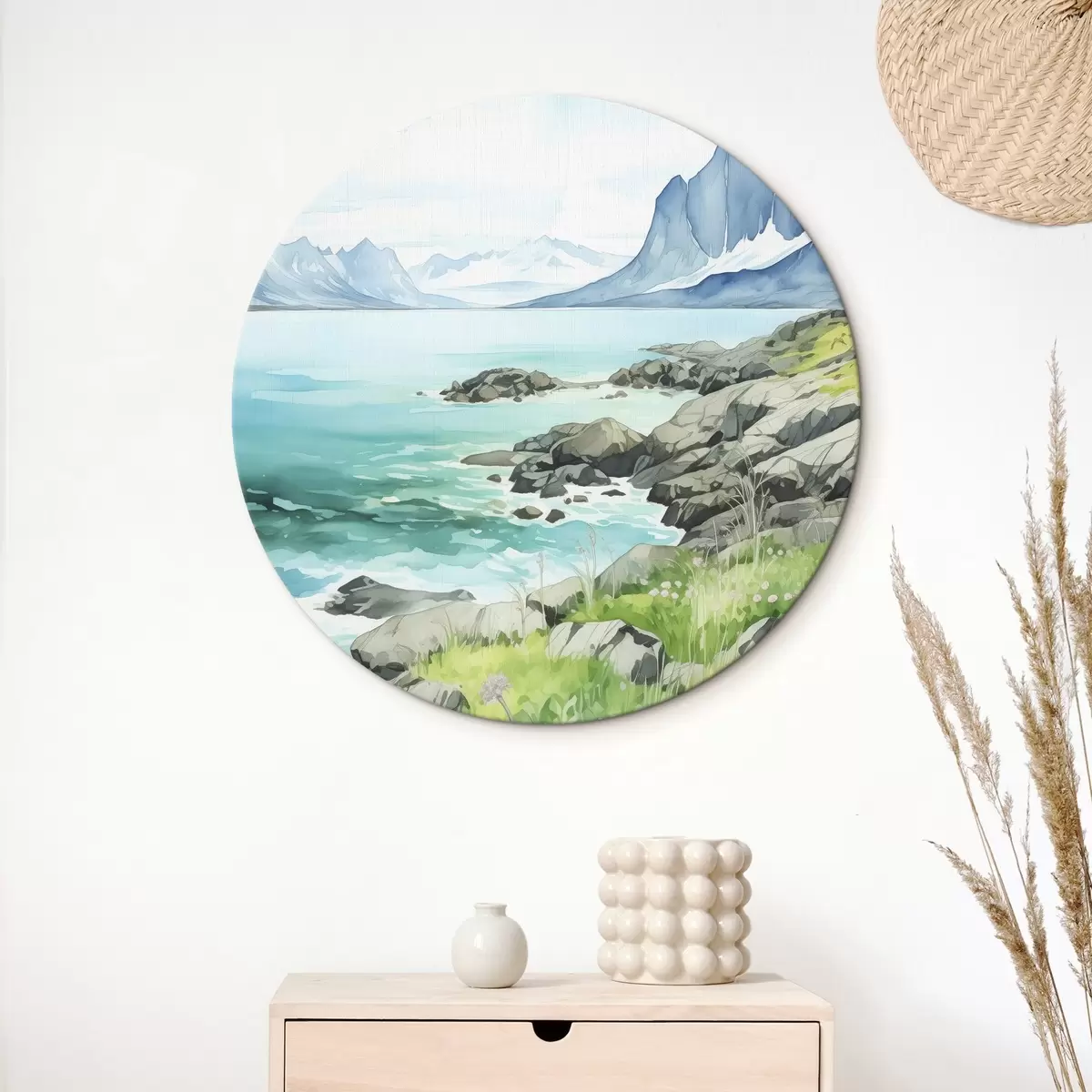 Obrázek Norsko příroda, fjordy, letní krajina, zelená tráva, hory, akvarel Nr r43188
