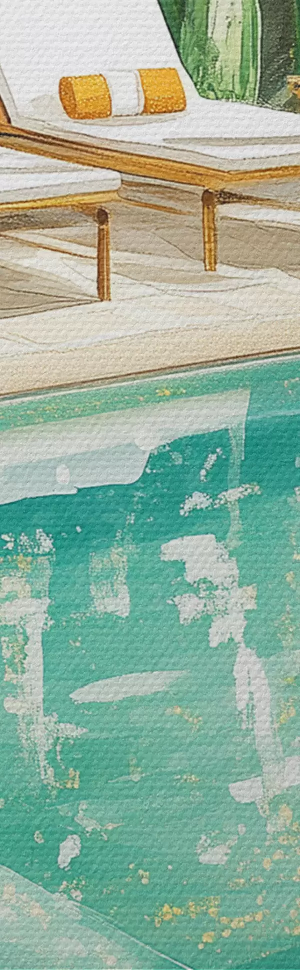 Obrázek Tropická příroda, zahrada, letní bazén, surfování, akvarelový styl Nr r43190