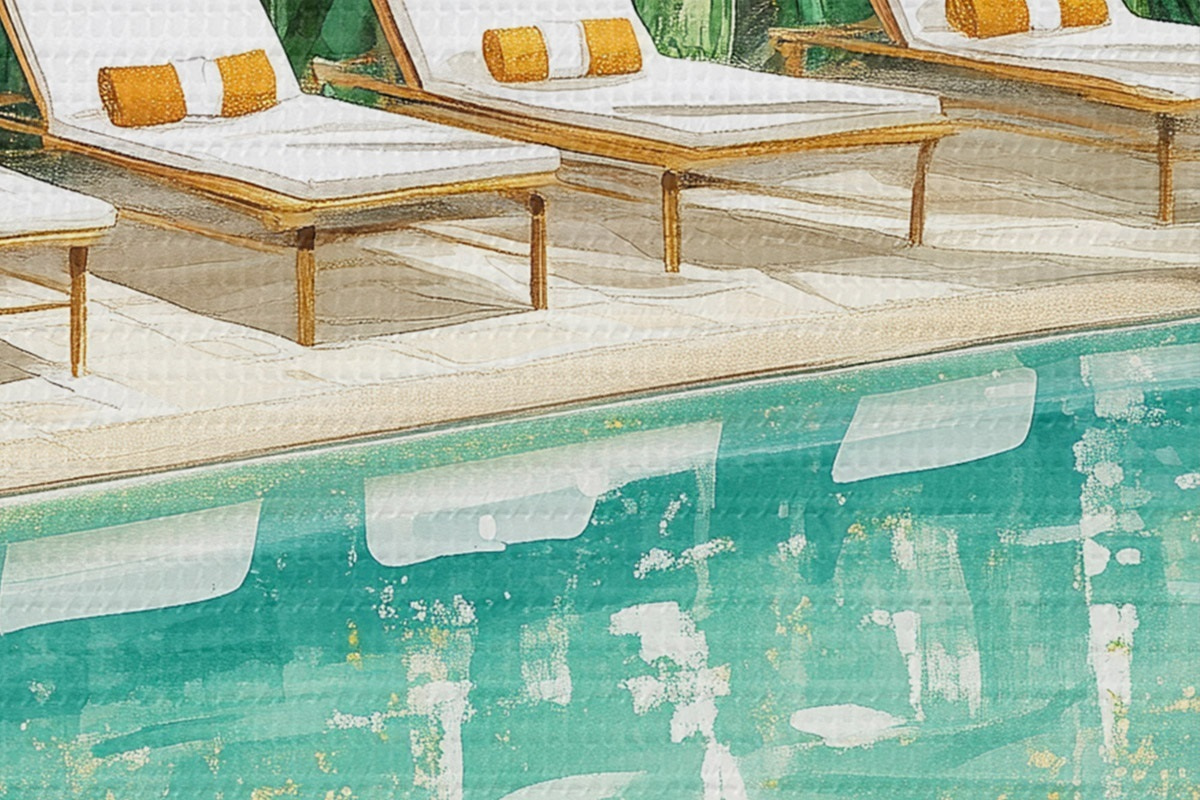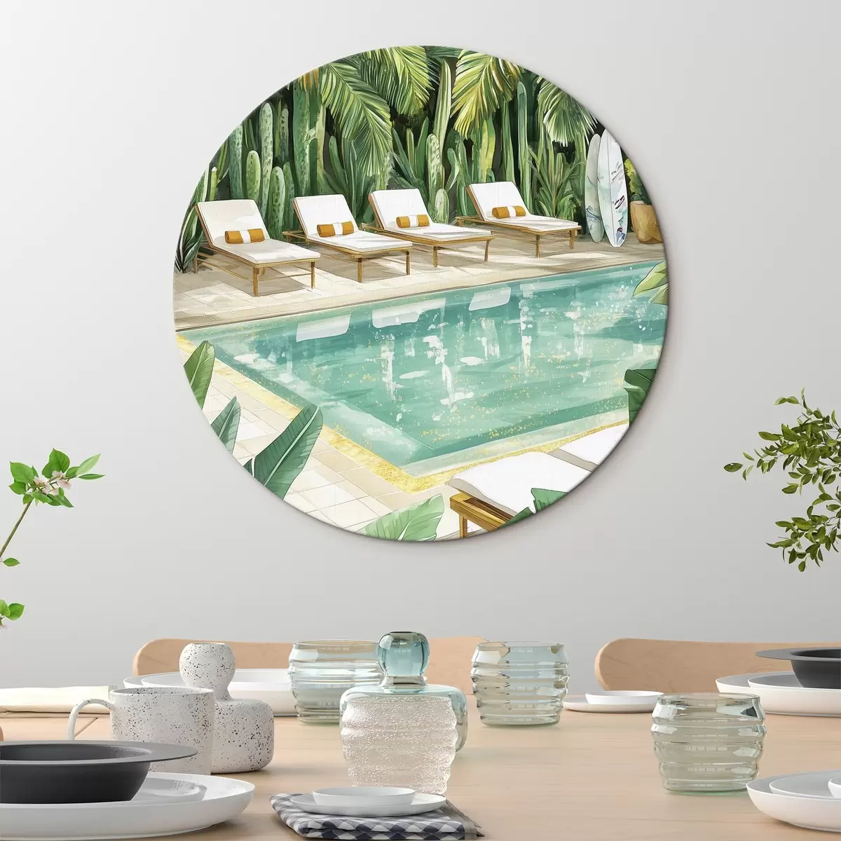 Obrázek Tropická příroda, zahrada, letní bazén, surfování, akvarelový styl Nr r43190