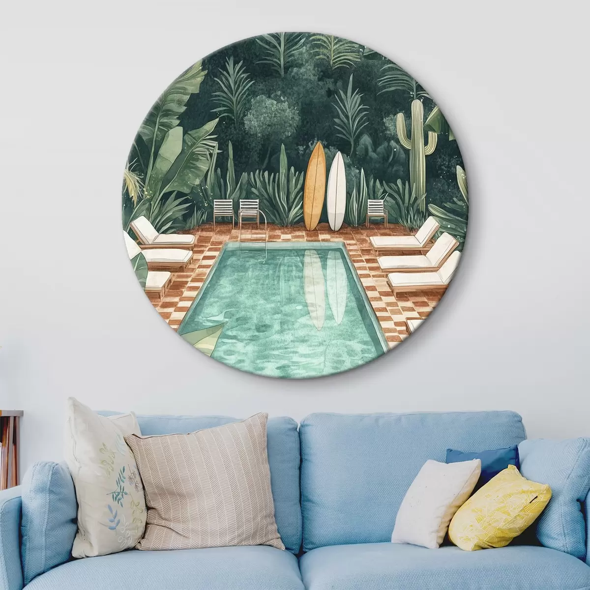 Obrázek Vintage letní bazén, tropický les, zeleň, palmy, akvarelový styl Nr r43191