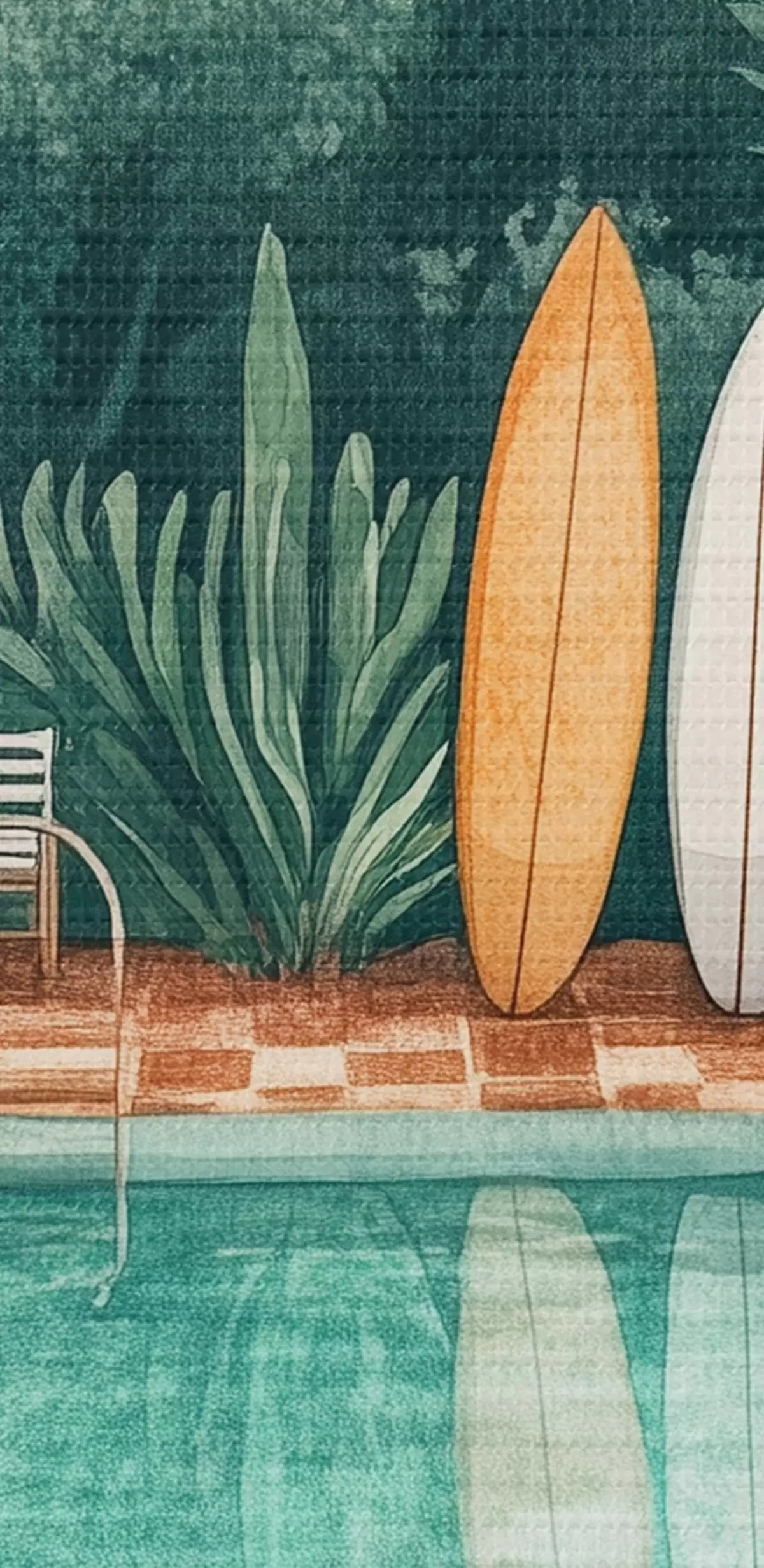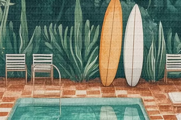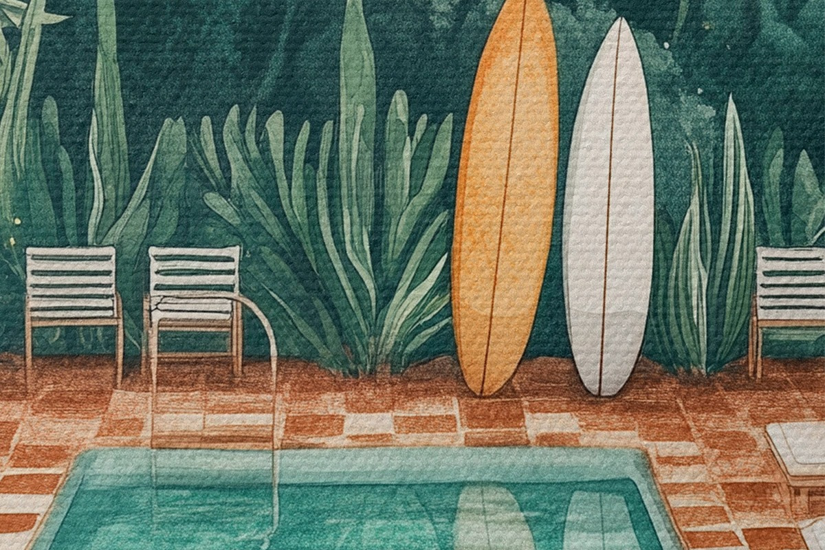 Obrázek Vintage letní bazén, tropický les, zeleň, palmy, akvarelový styl Nr r43191