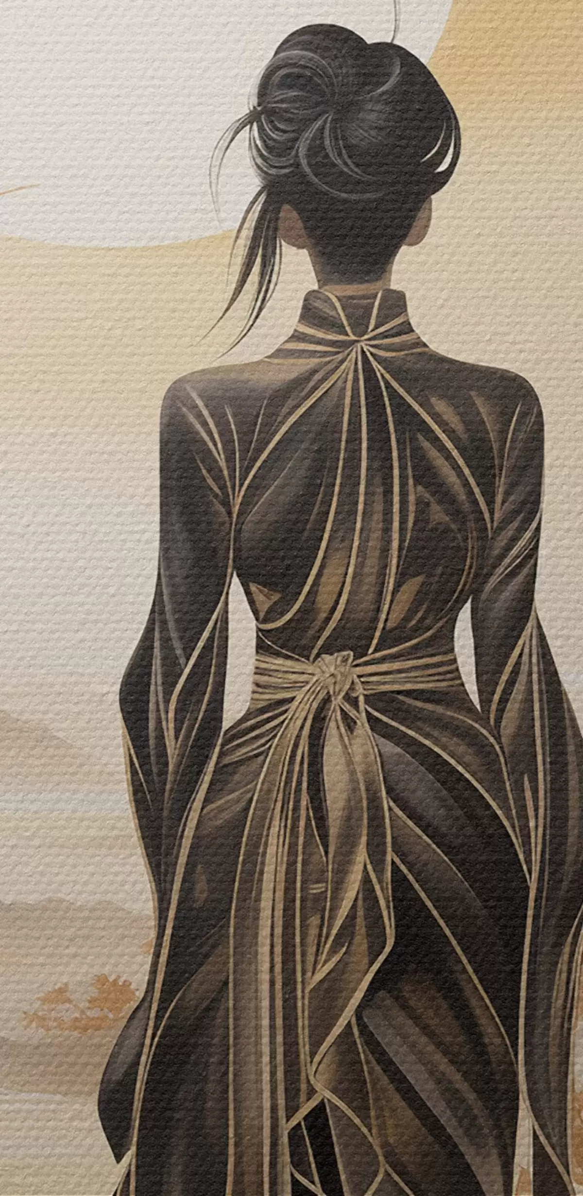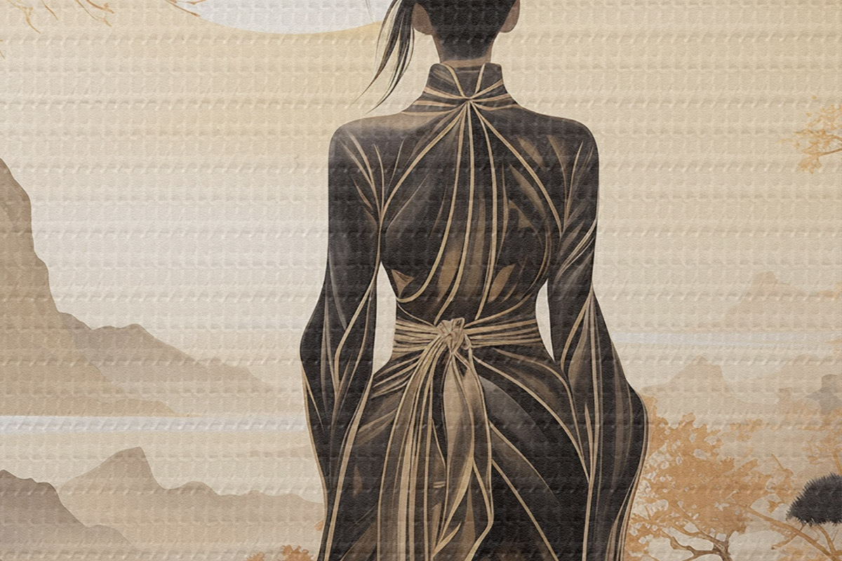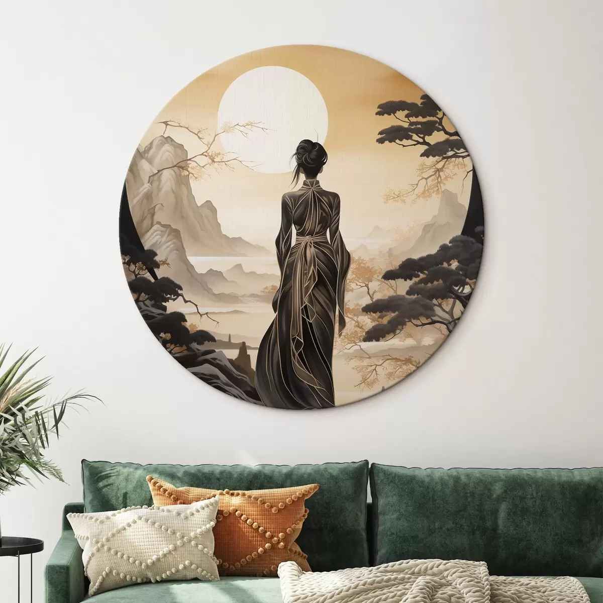 Obrázek Lidé, Japonsko, dívka při západu slunce na pozadí sakur a hor Nr r43256
