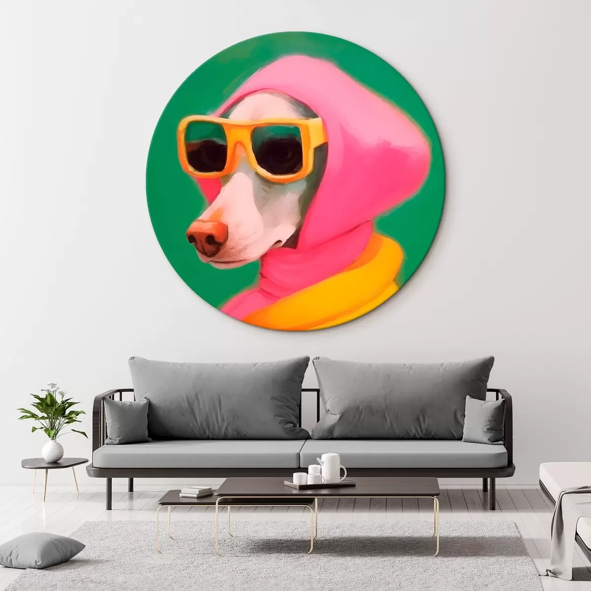 Kulaté obrazy Stylový pes ve světlém oblečení r43265