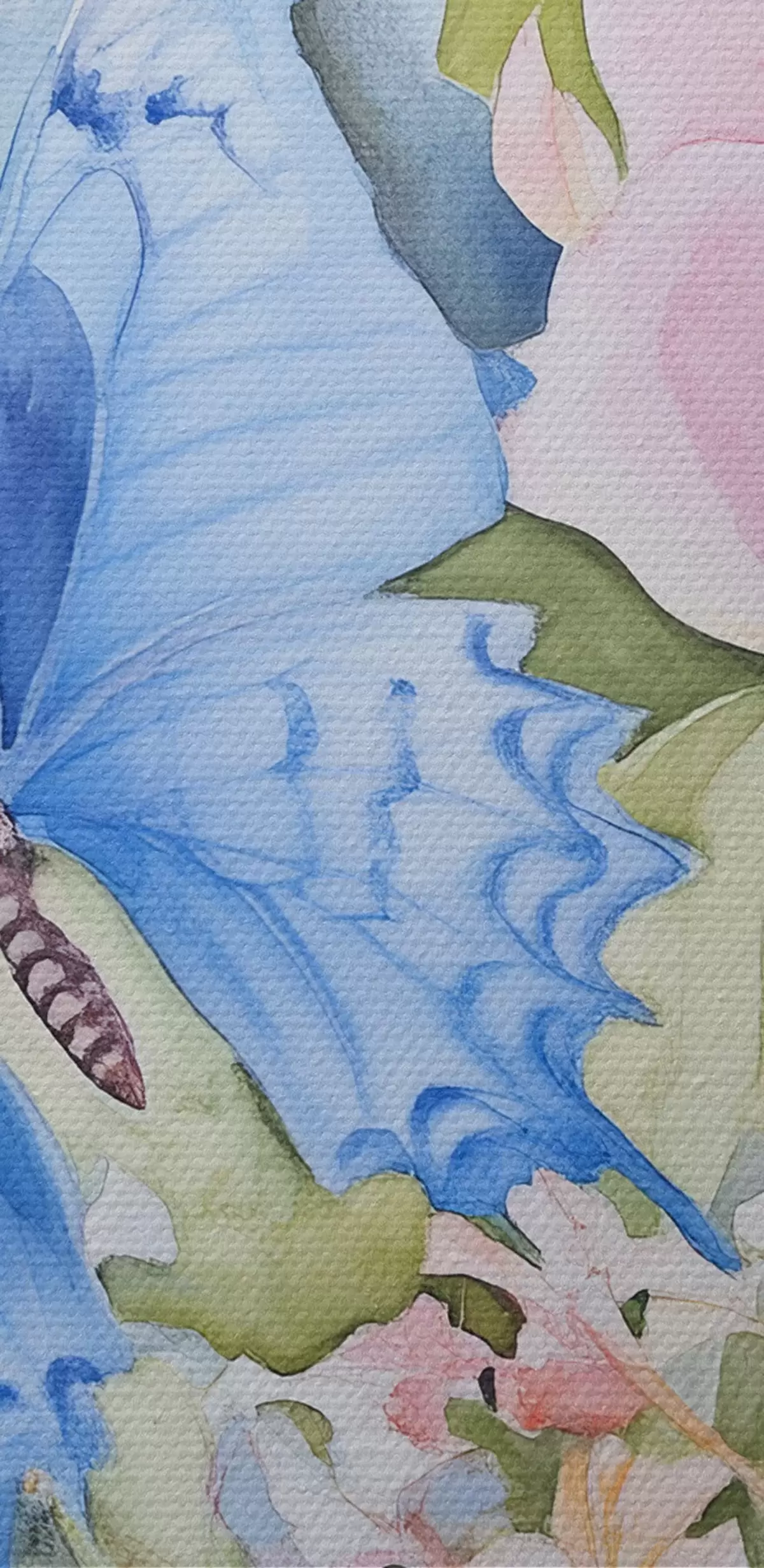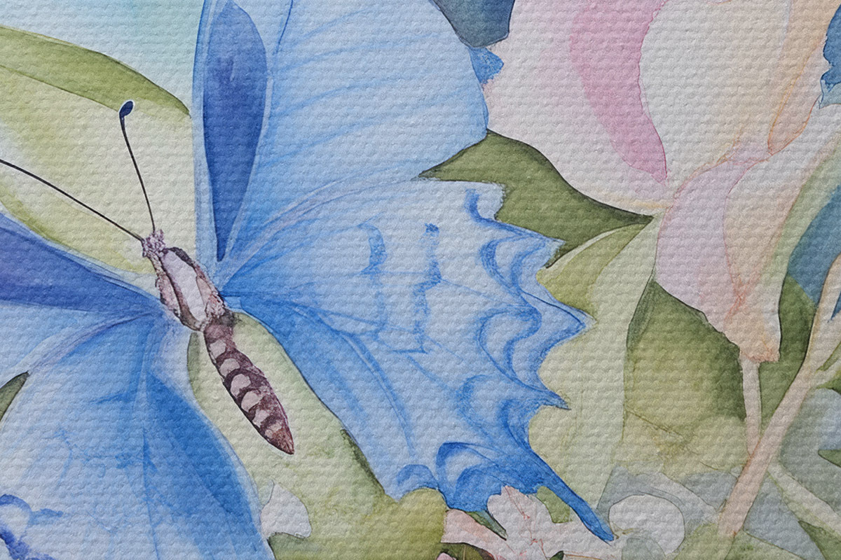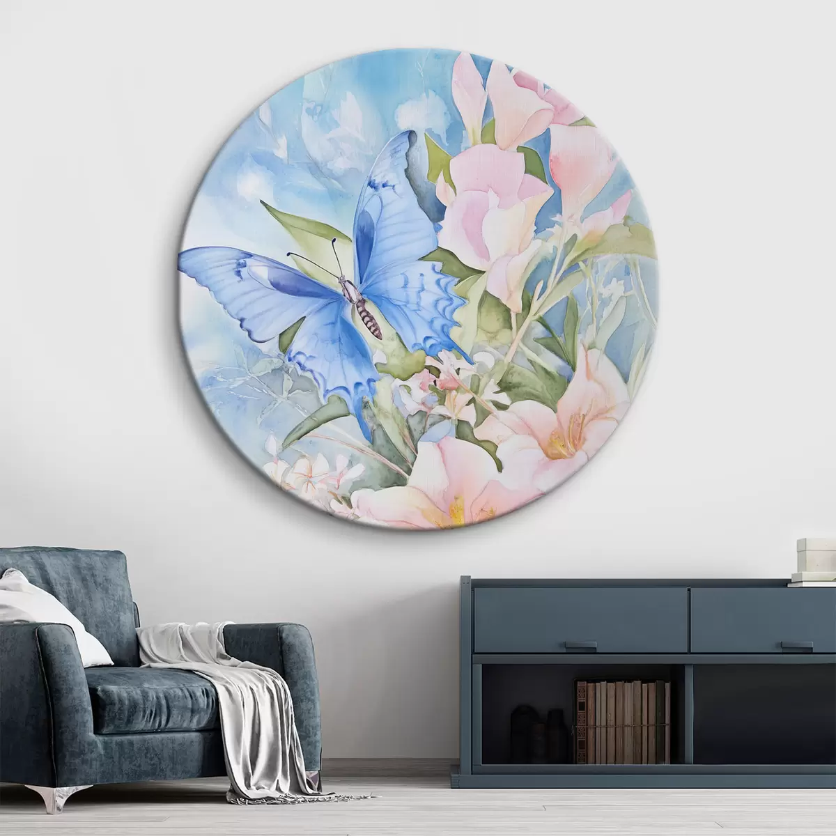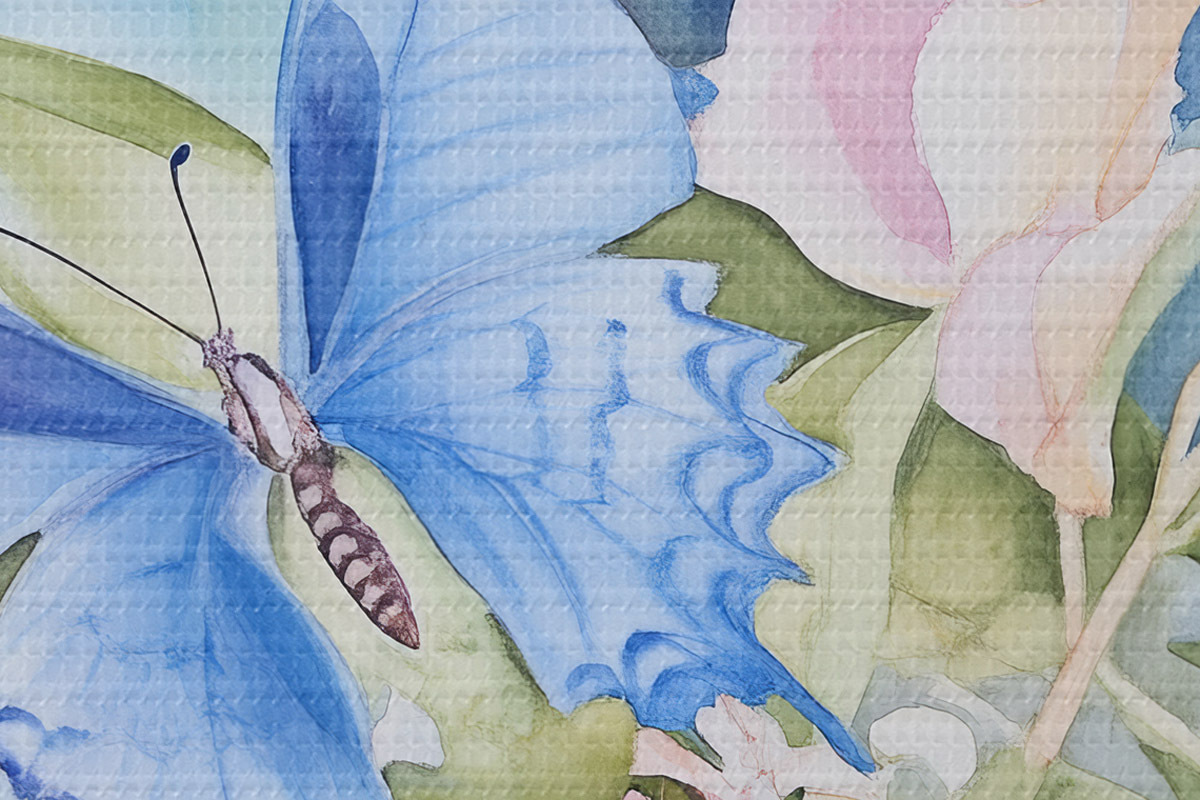 Obrázek Modrý motýl a růžové květy Nr r43296