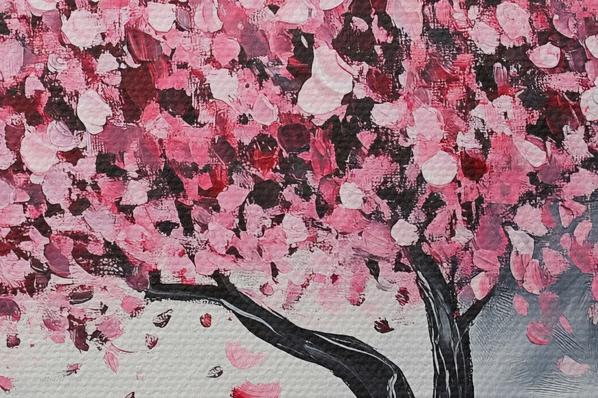 Obrázek Růžový kvetoucí strom na šedém pozadí Nr r43299