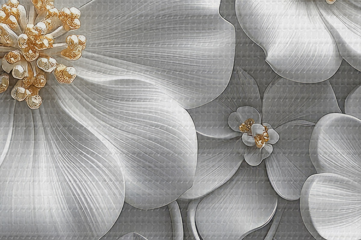 Obrázek 3d šedé květy se žlutým akcentem Nr r43310