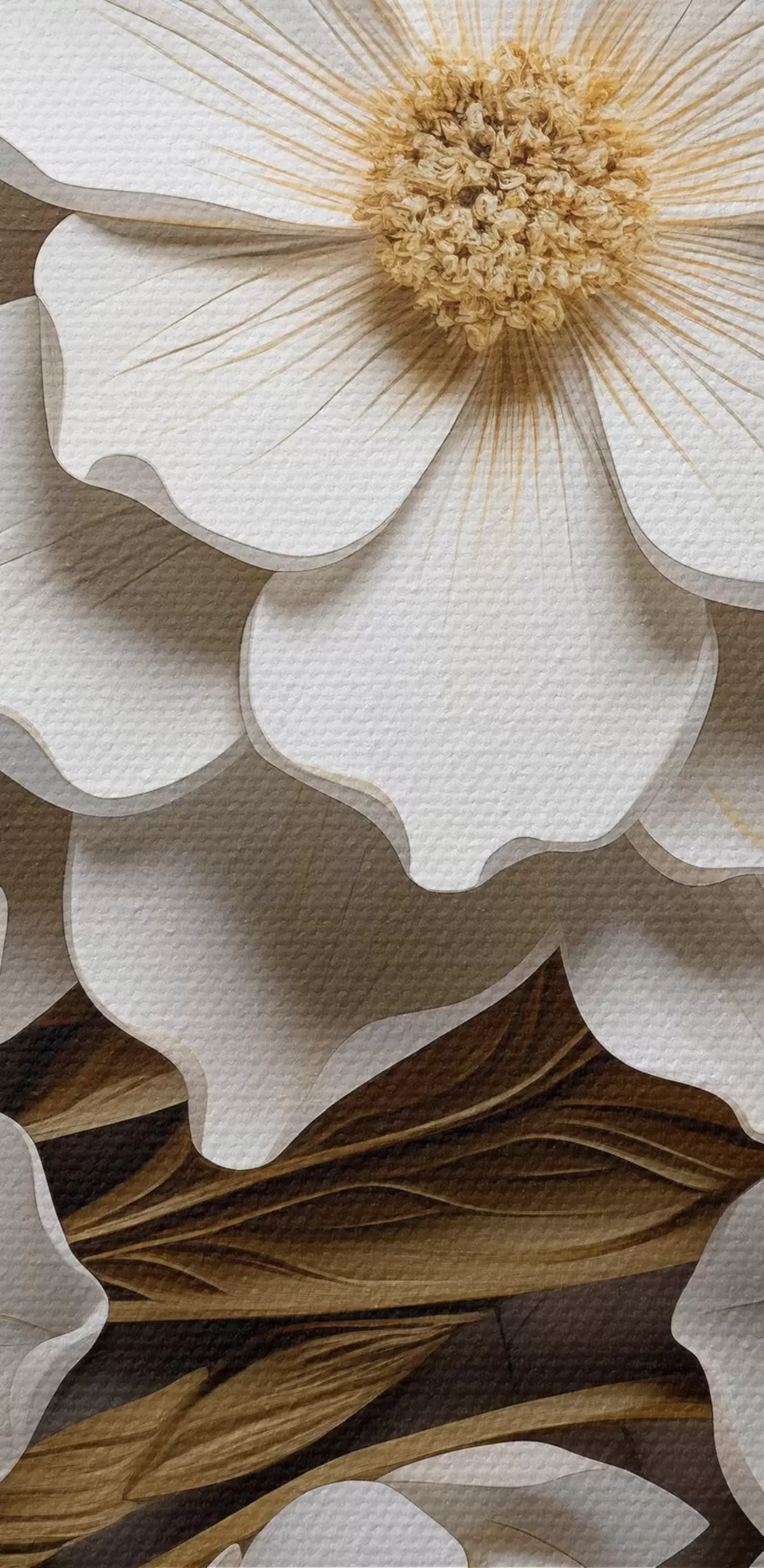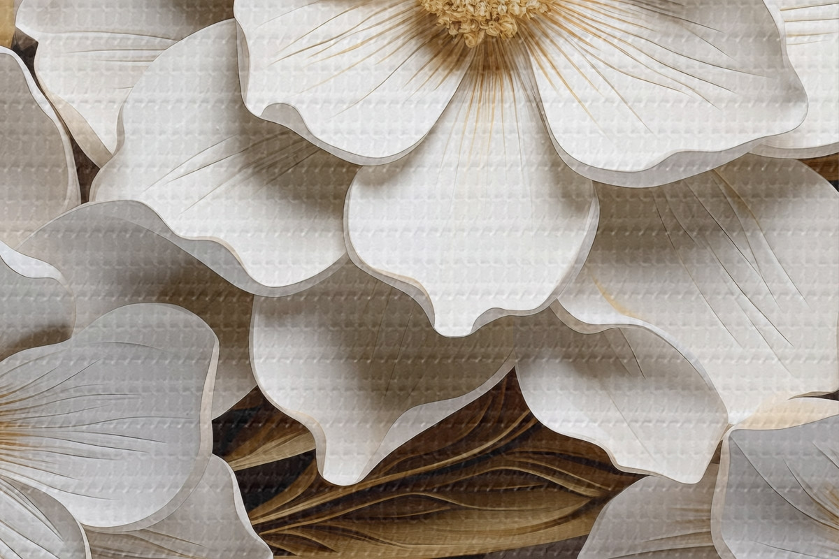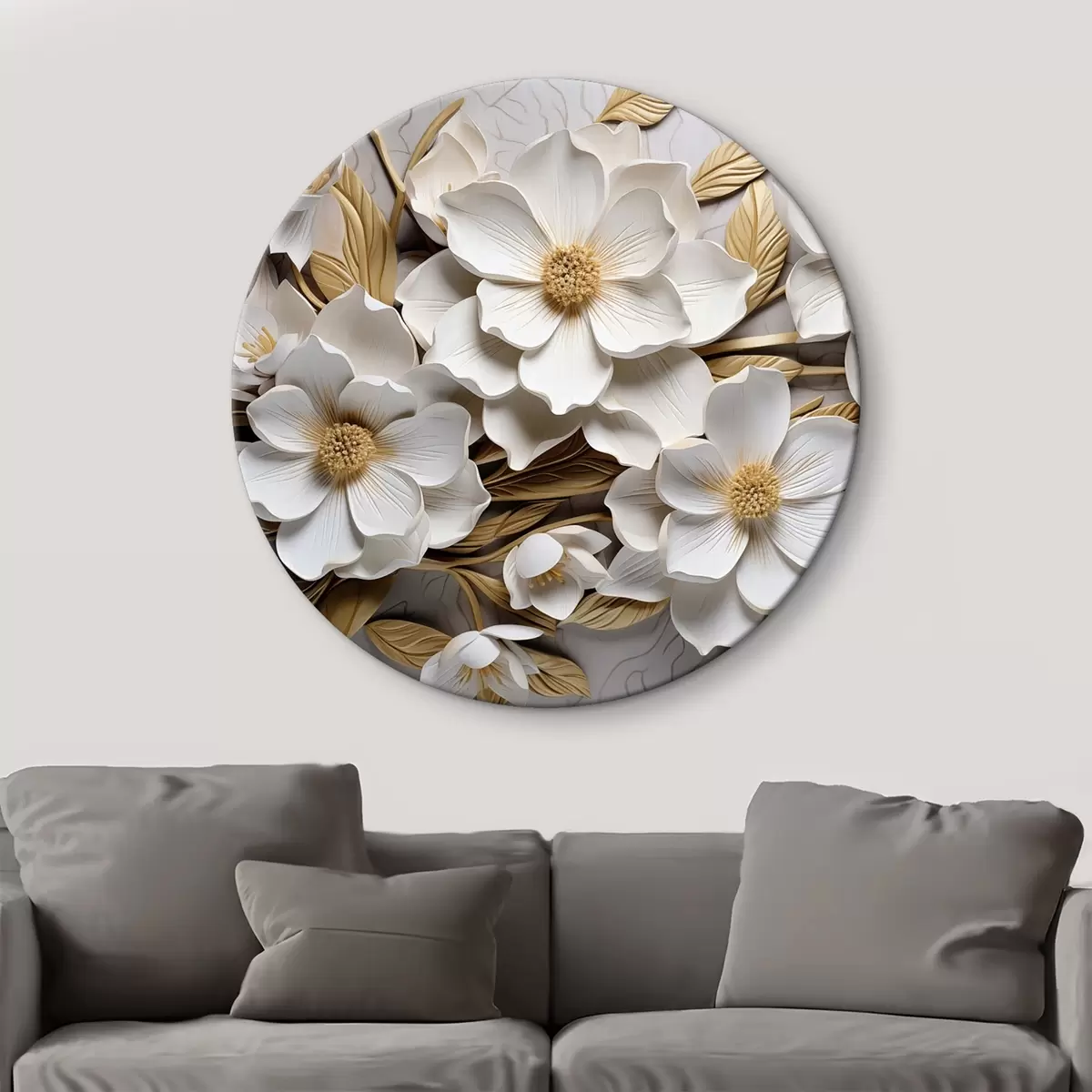 Obrázek Bílé květy ve stylu reliéfní fresky se žlutými akcenty Nr r43330
