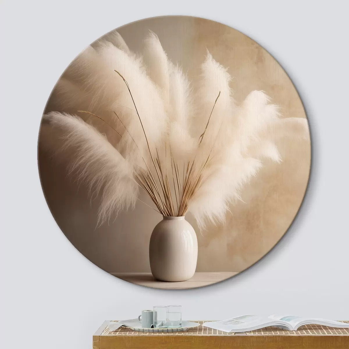 Obrázek Chlupaté větvičky rákosu ve váze na stole Nr r43338