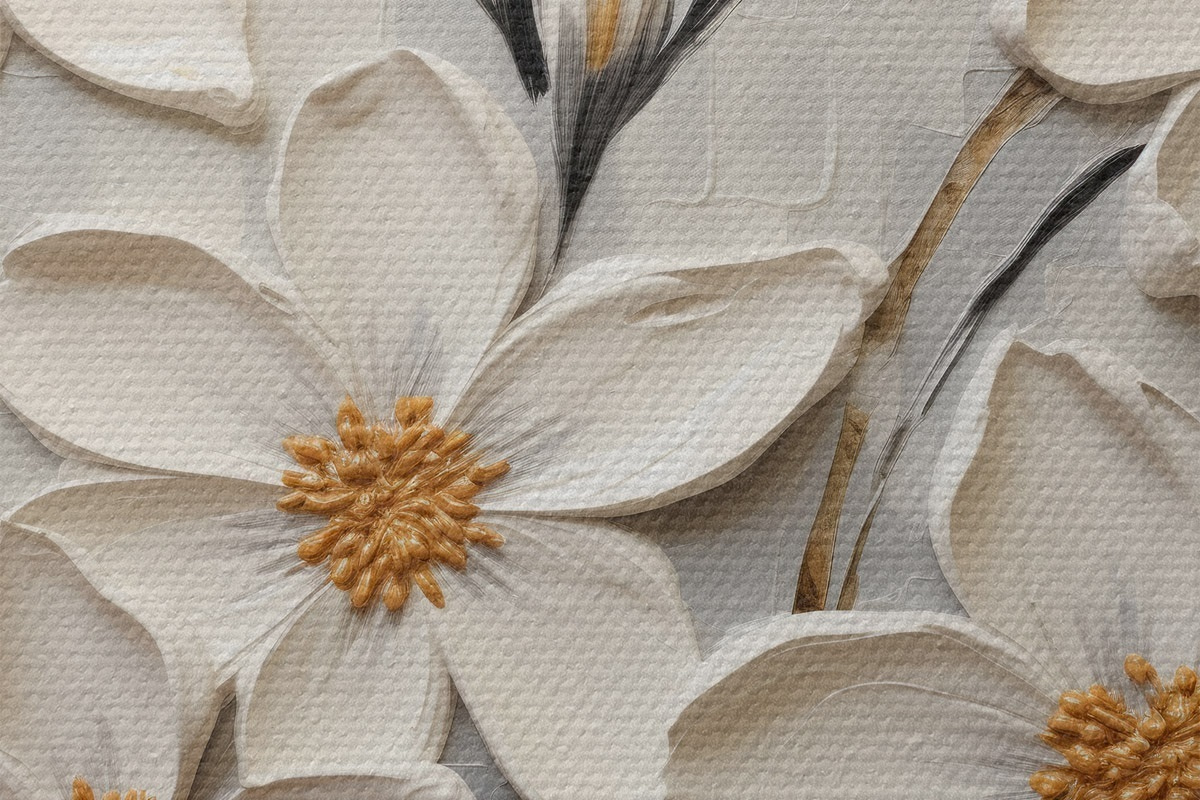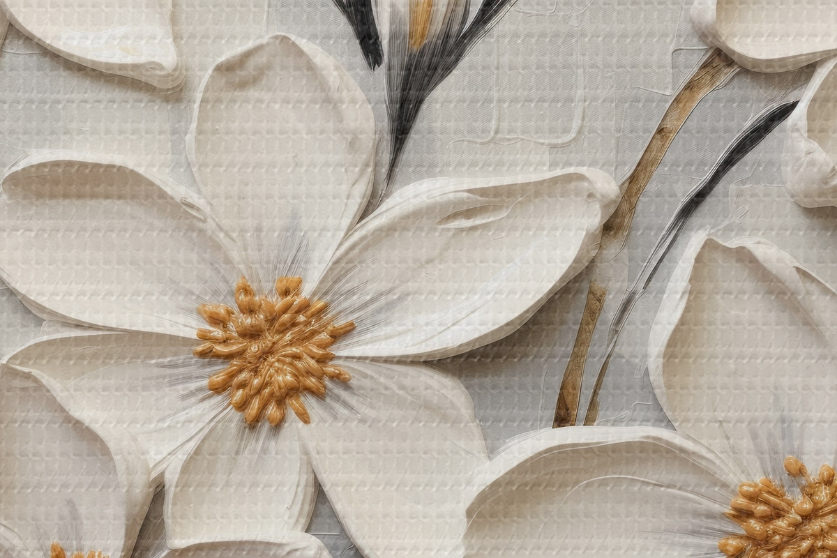 Obrázek Bílé objemné květiny ve stylu malby velkými tahy štětce Nr r43366