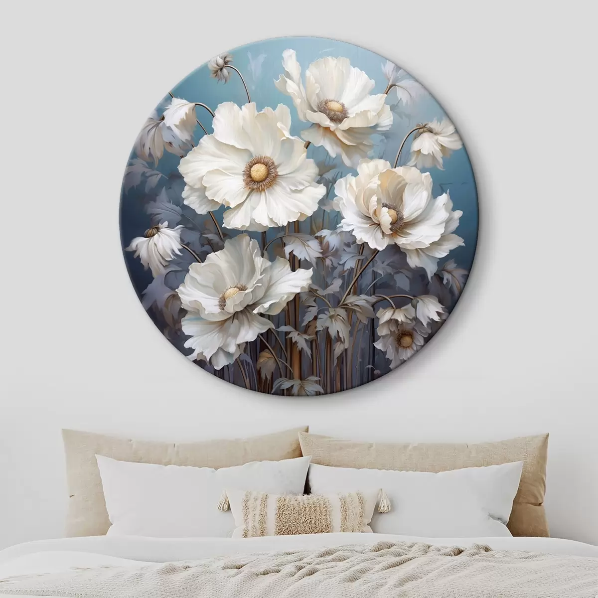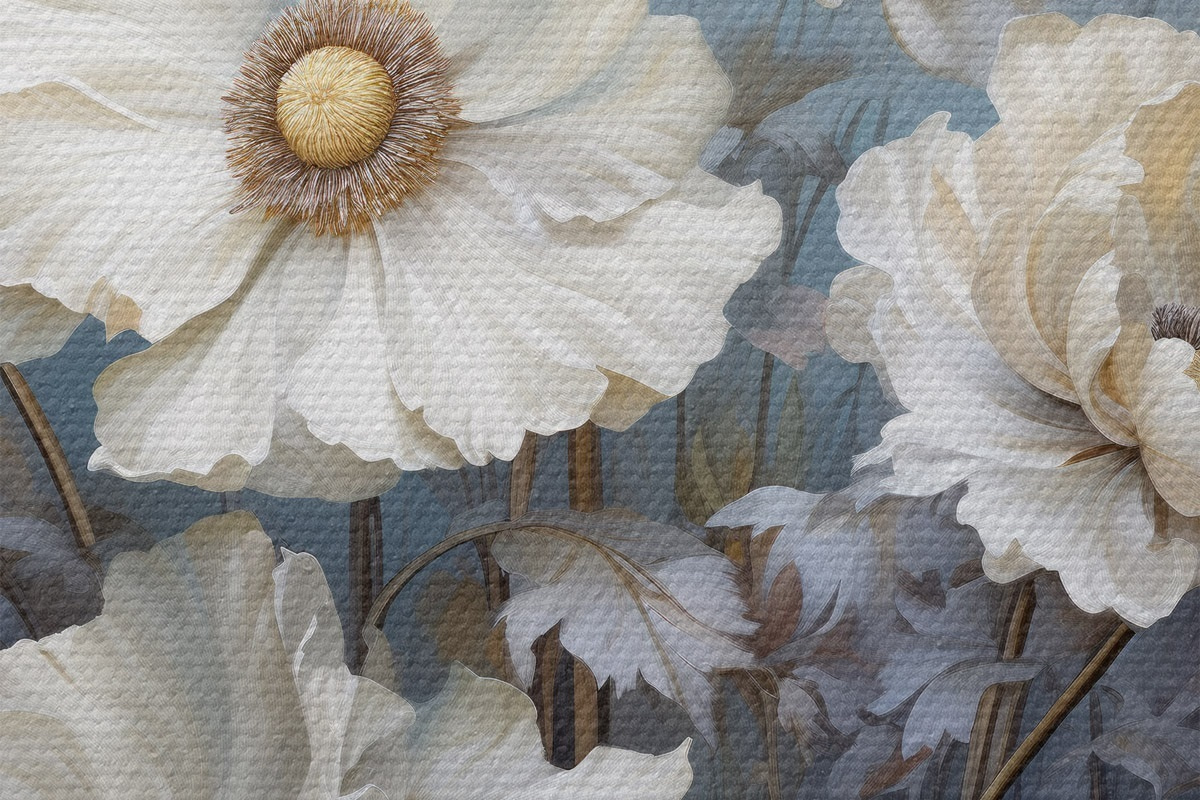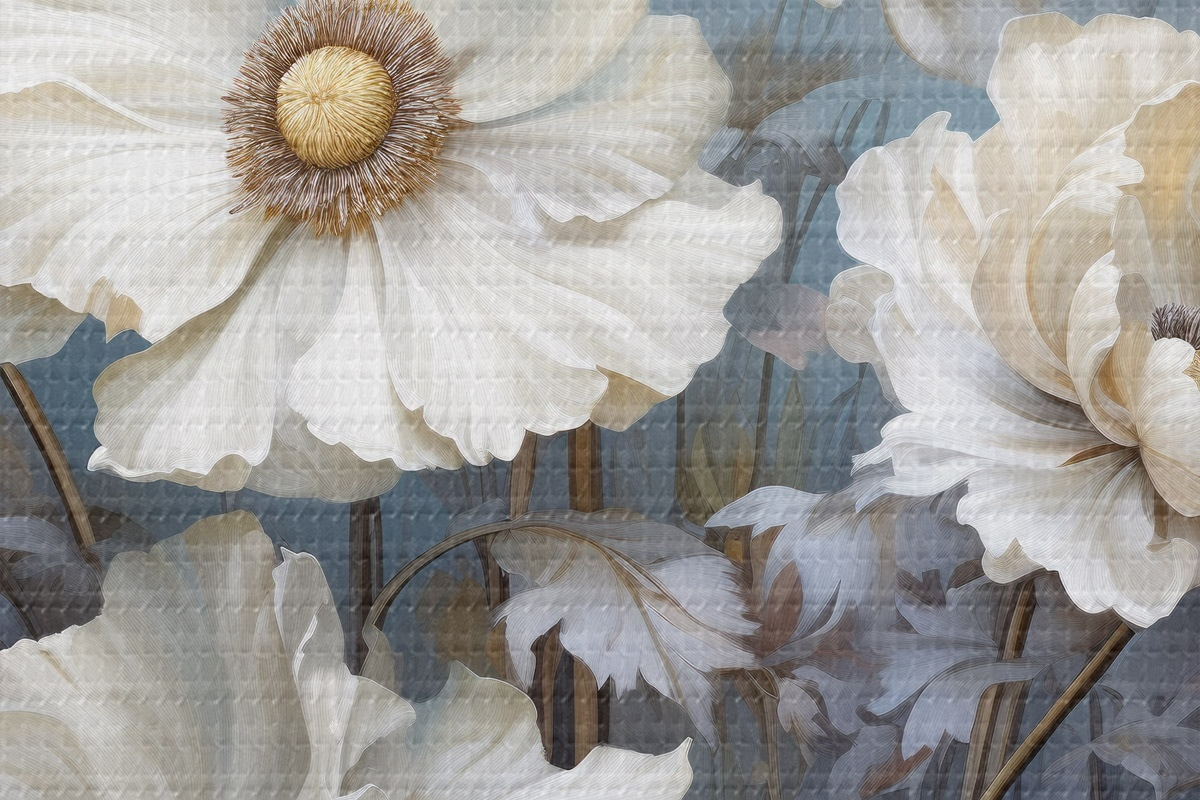 Obrázek Bílá kytice pivoněk na modrém pozadí ve stylu malby Nr r43370