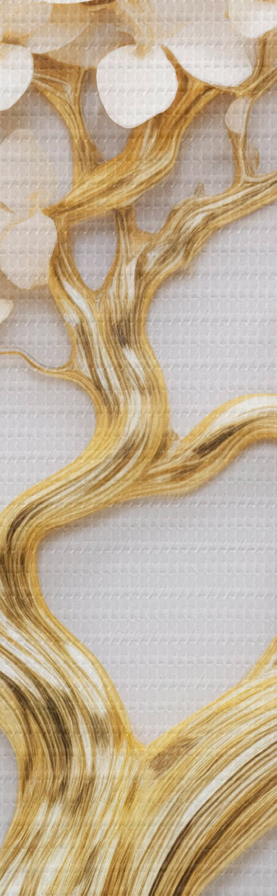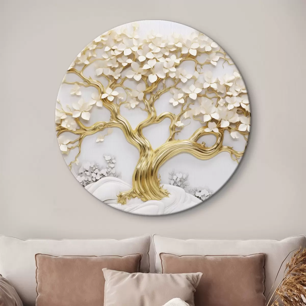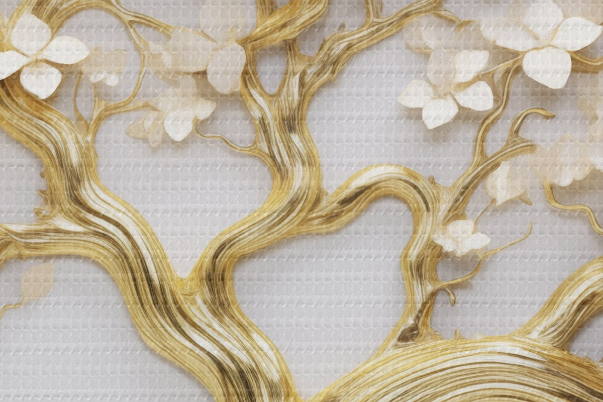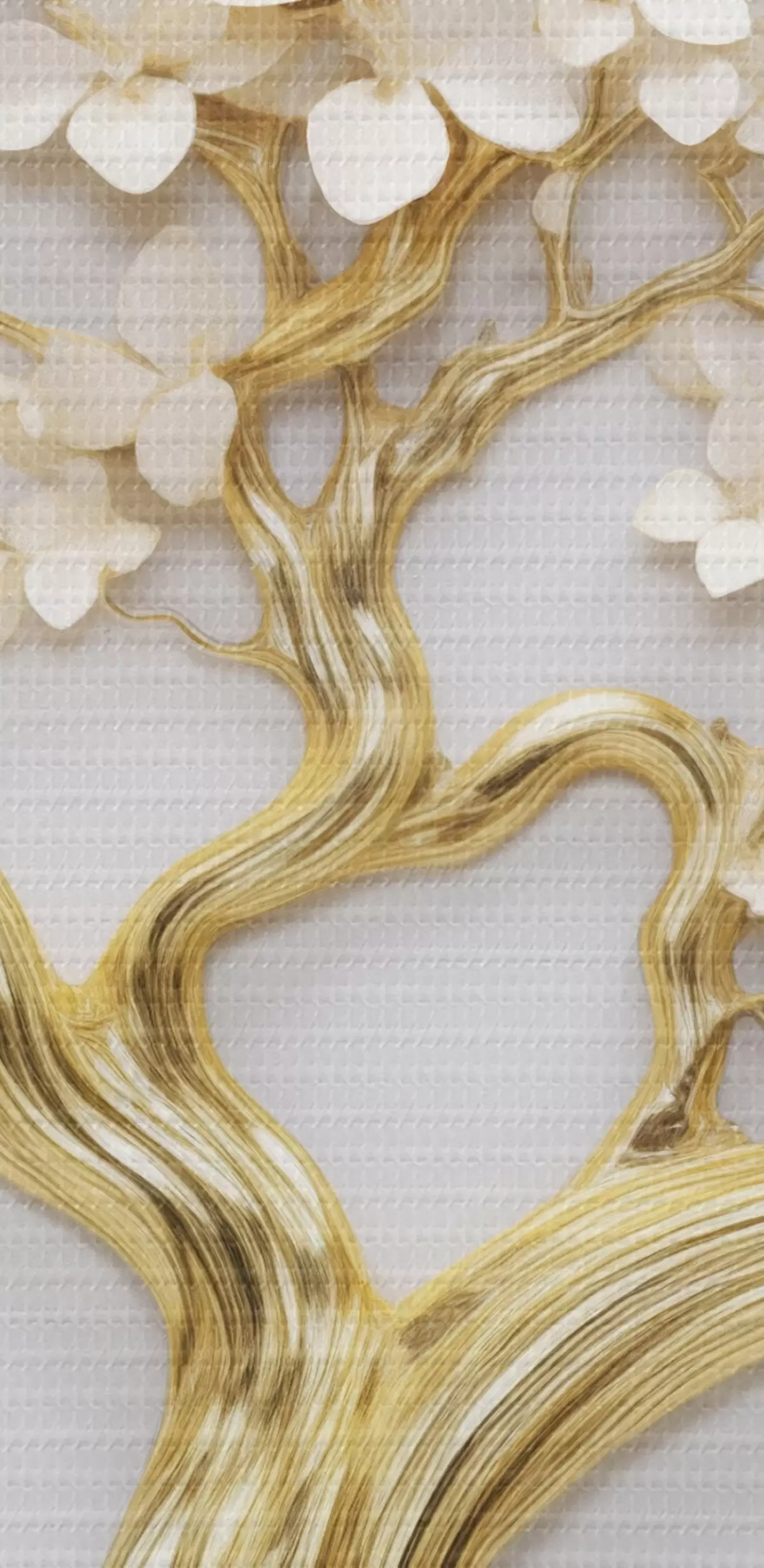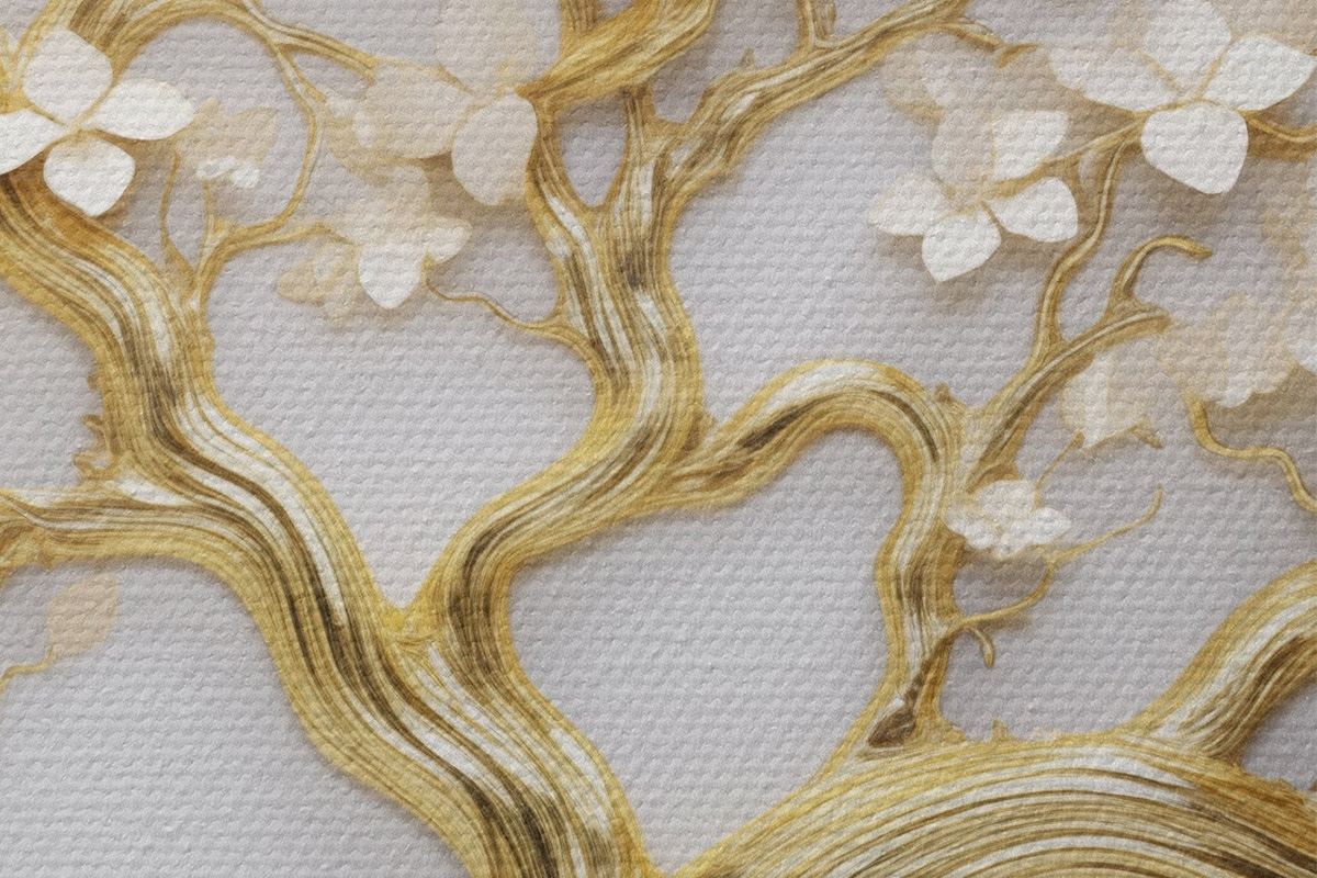 Obrázek Dekorativní strom s bílými květy, bílé pozadí, bílé skály, složité detaily, umění inspirované přírodou Nr r43388