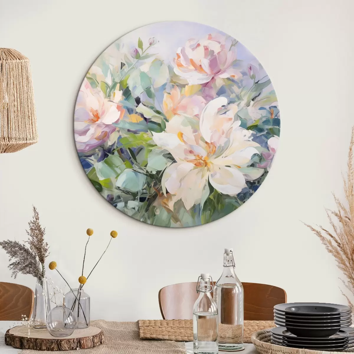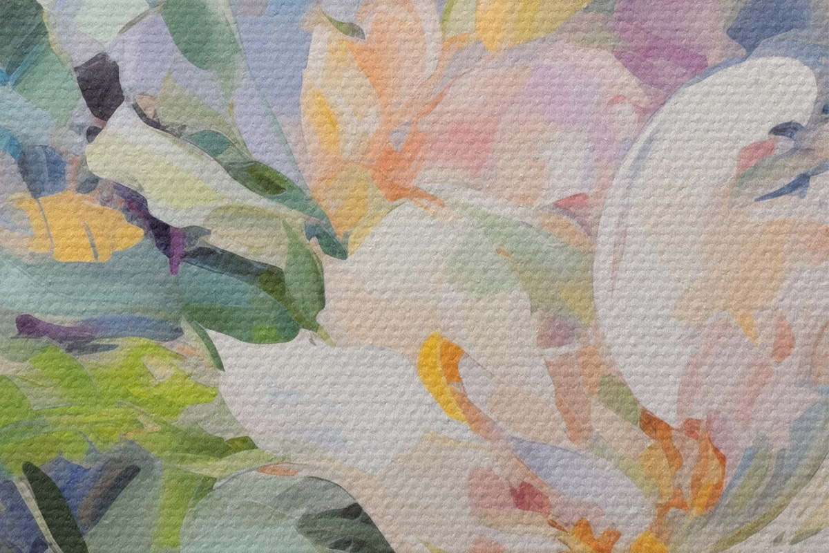 Obrázek Květinové aranžmá s pastelově zbarvenými květy s modrými listy, imitace olejomalby Nr r43390