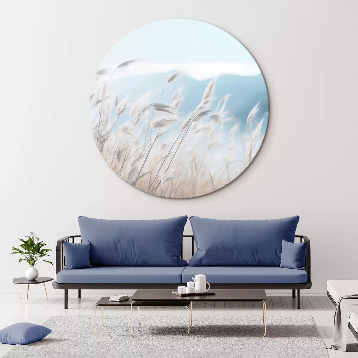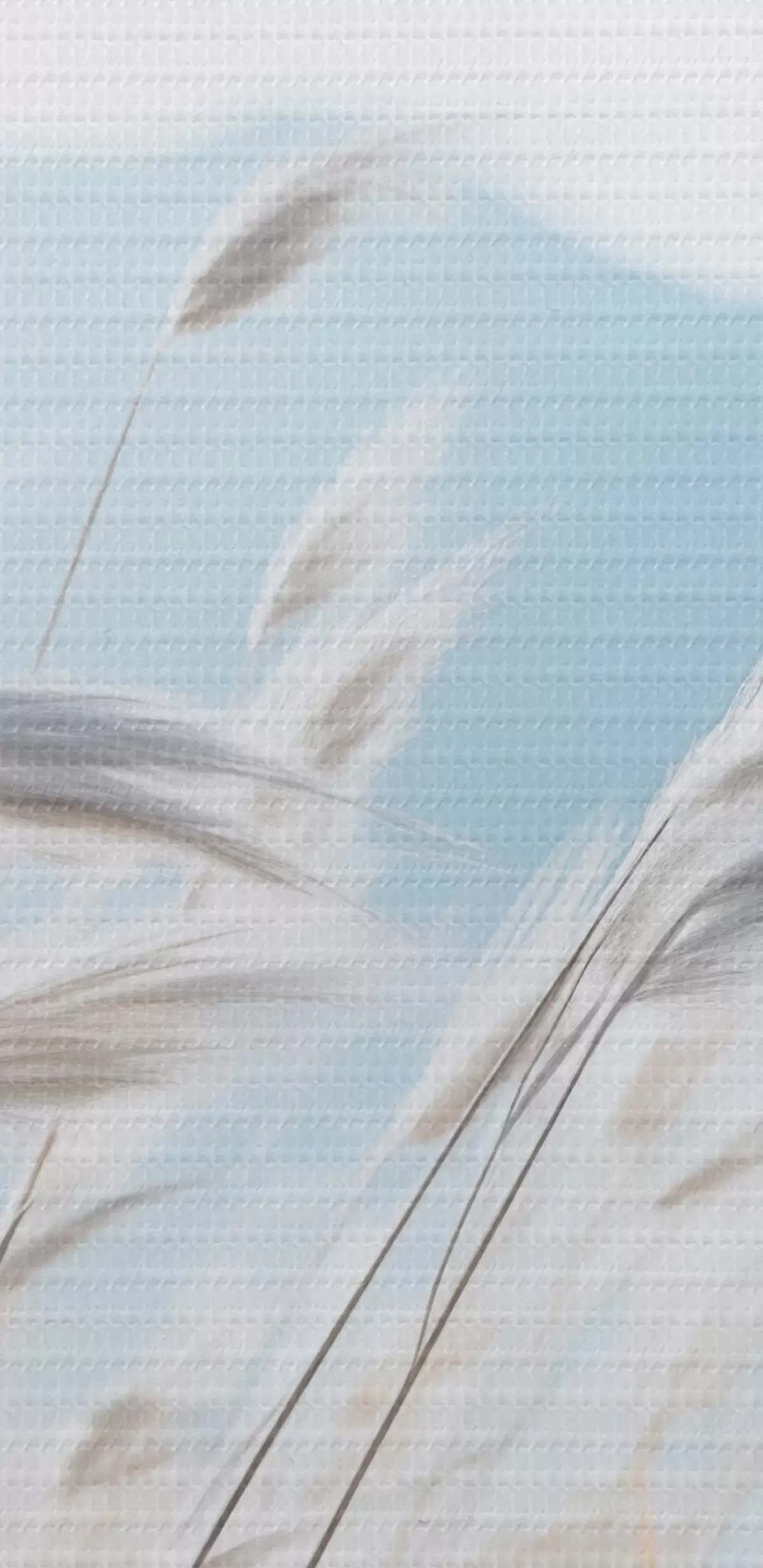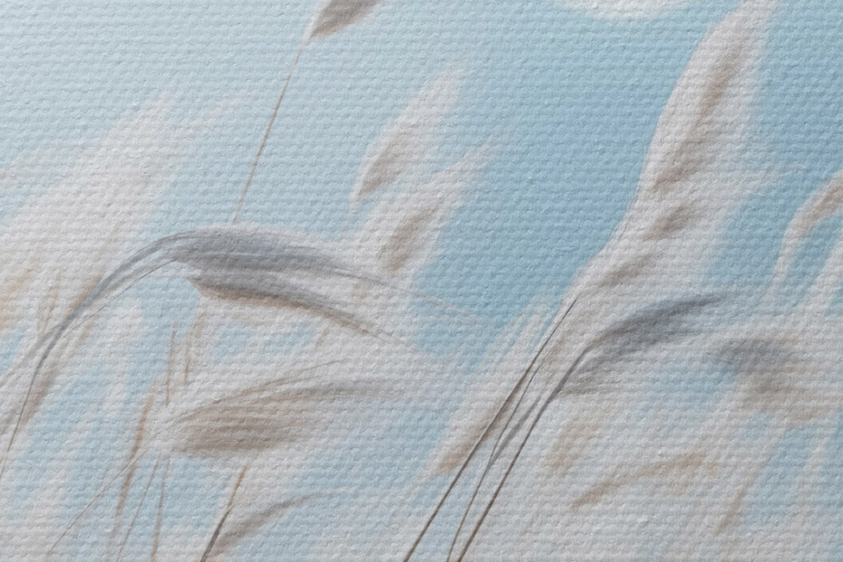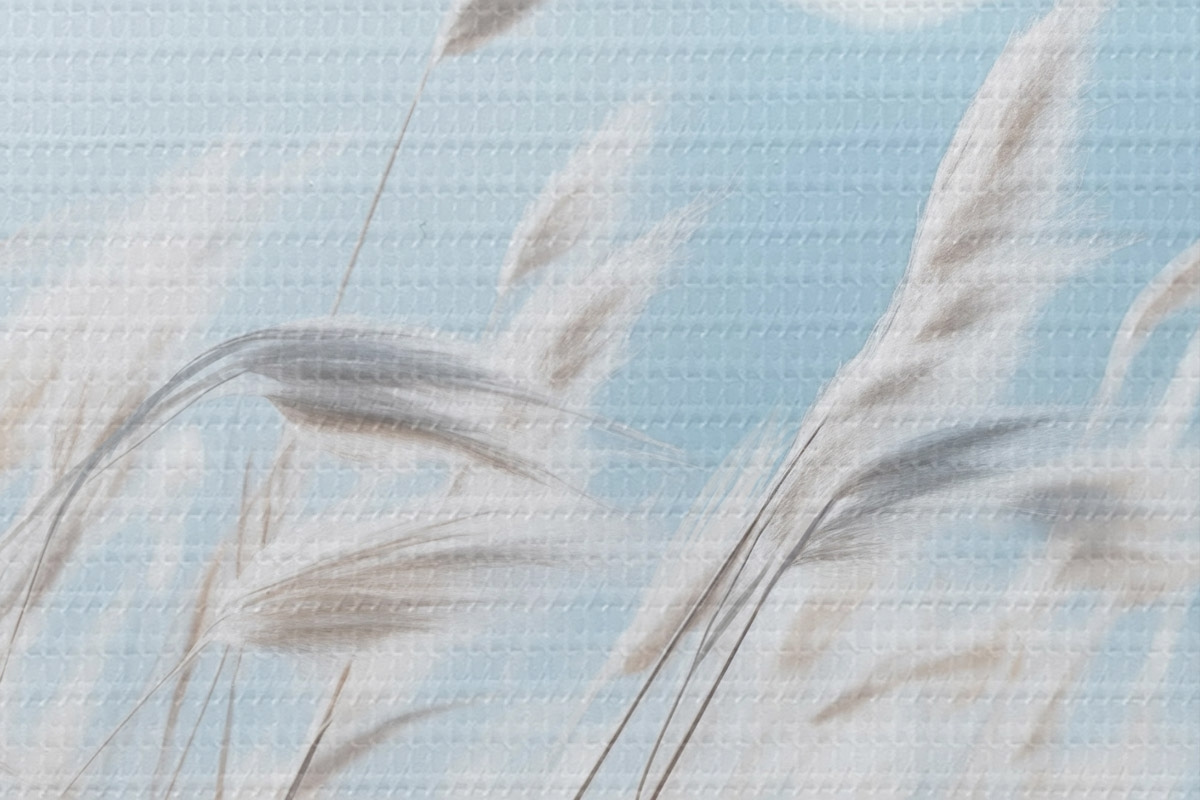 Obrázek Tráva, pampové pole s modrou horou v pozadí, světle modrá obloha, minimalistické, pastelové barvy Nr r43404