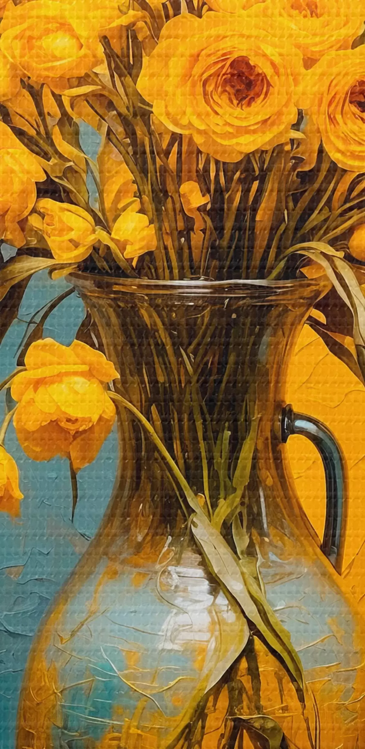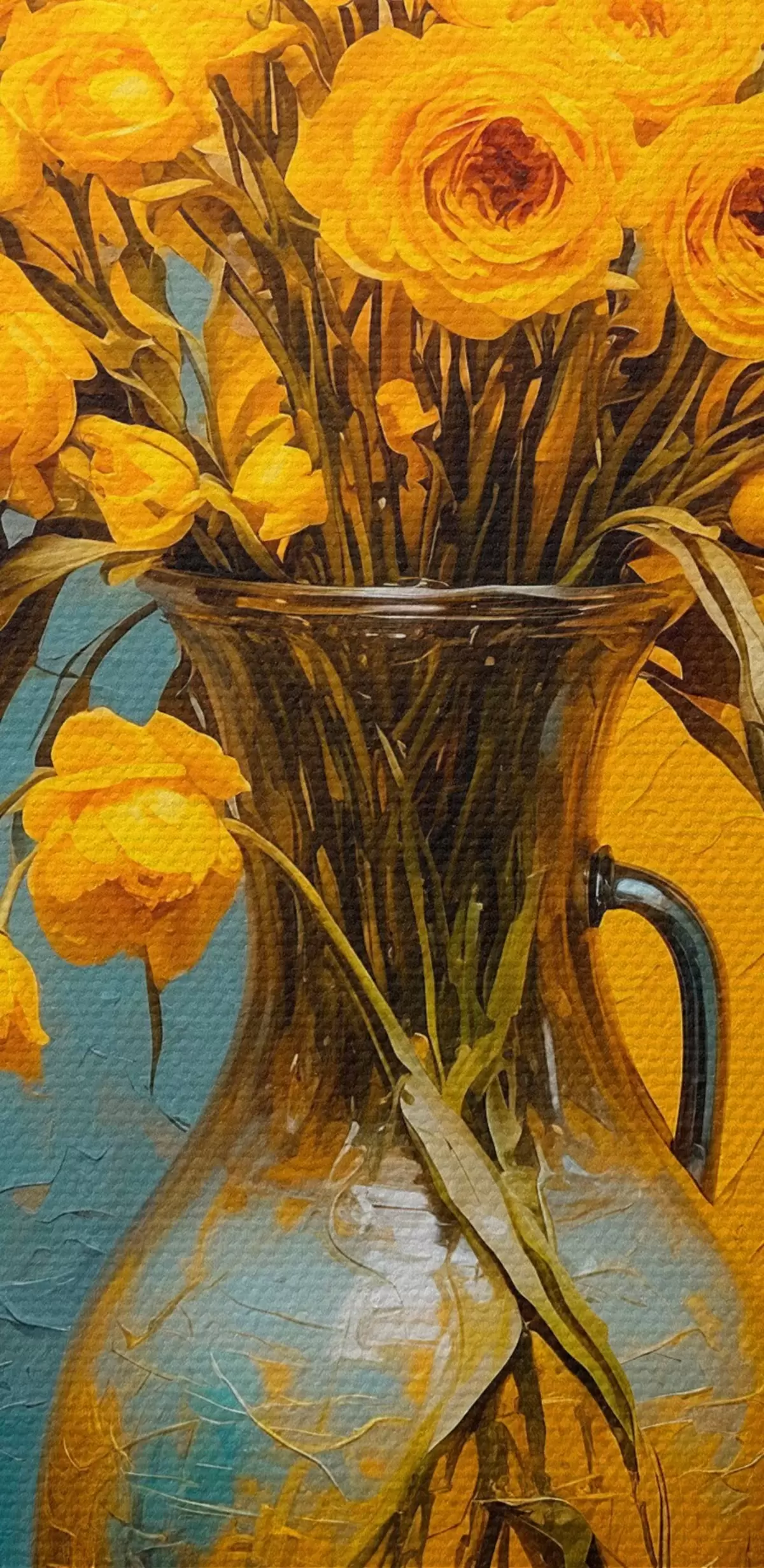 Obrázek Žluté květiny ve váze na stole Nr r43462