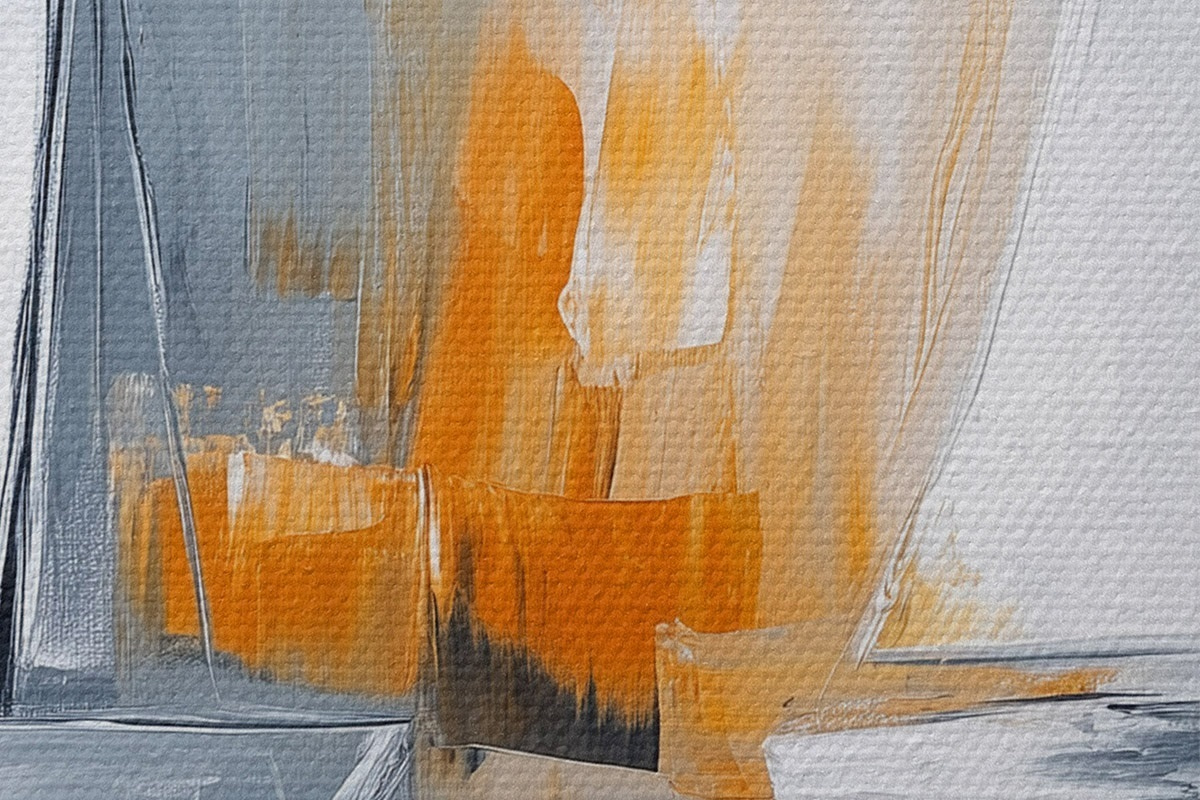 Obrázek Plachetnice, abstrakce, kresba akrylem, šedá a oranžová barva Nr r43499