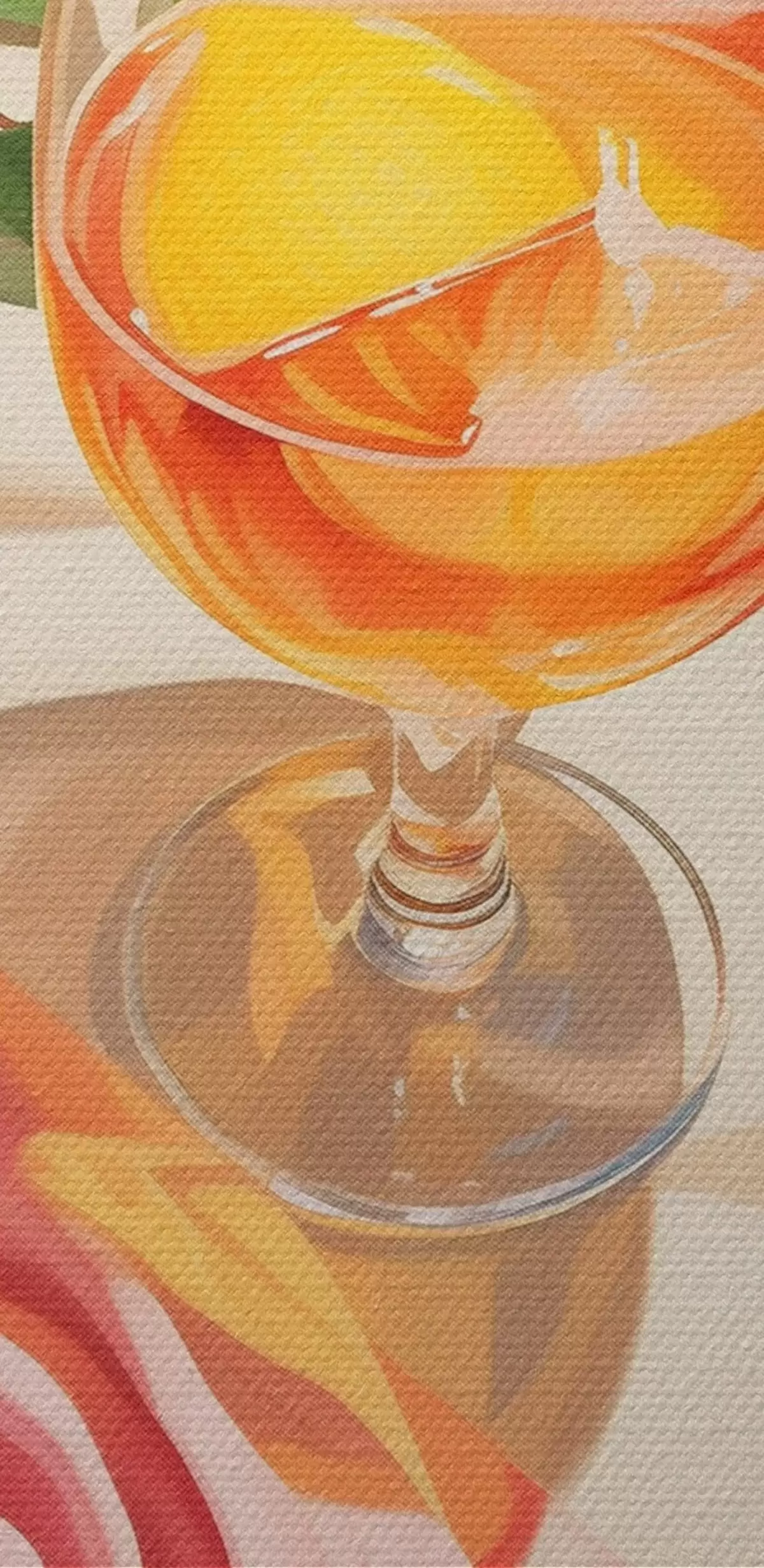 Obrázek Léto, sklenice se šampaňským, zelené rostliny, teplé barvy Nr r43885