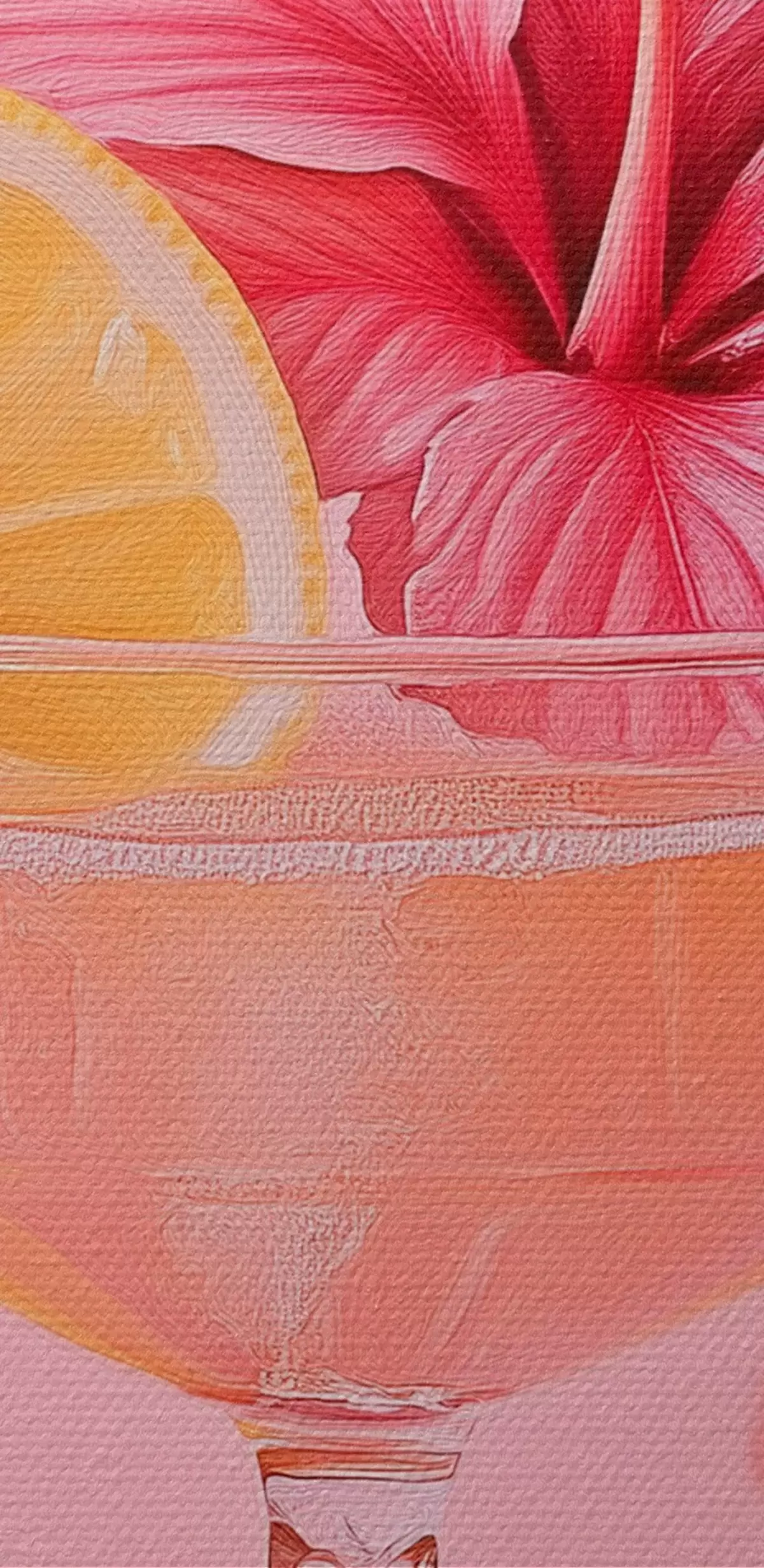 Obrázek Růžový koktejl s květem ibišku, citrony, realismus Nr r43893