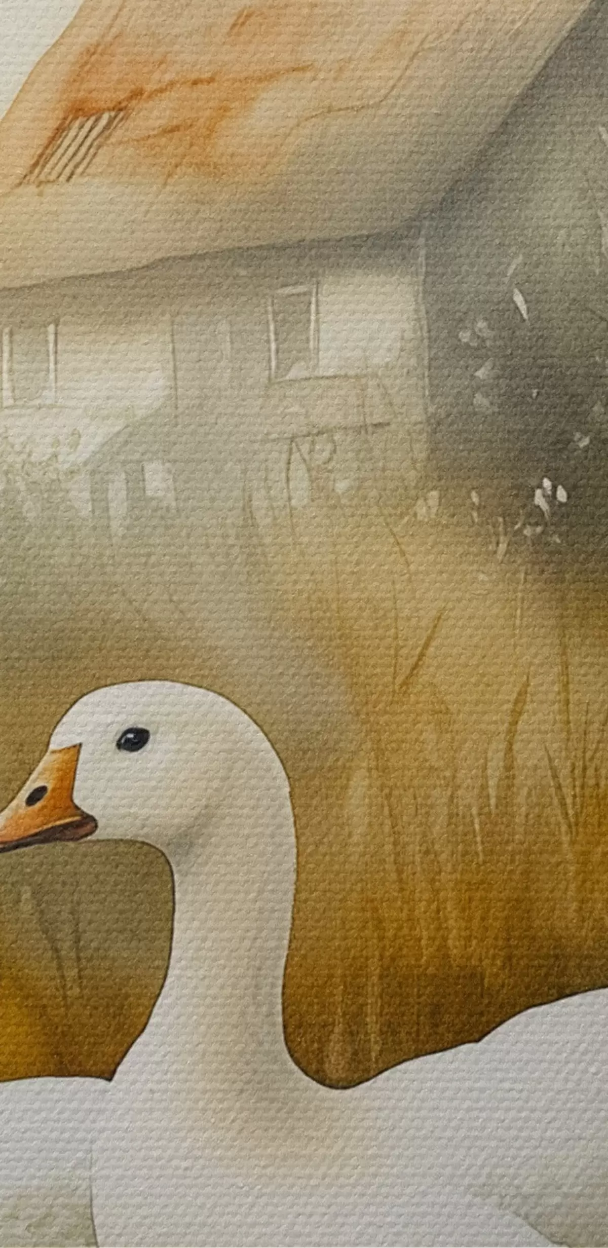 Obrázek Husy v jezeře u statku, rustikální, akvarelový styl Nr r44022