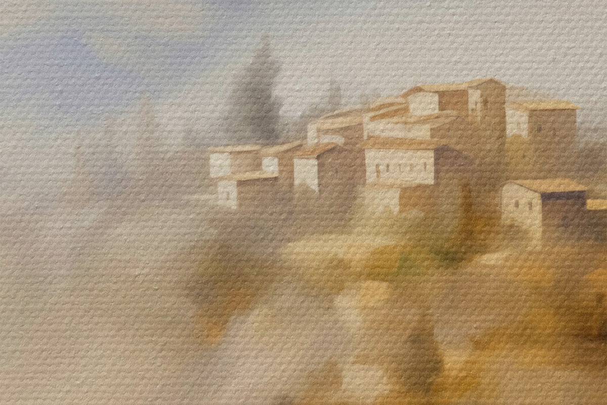 Lakování vytváří na plátně další ochrannou vrstvu. Obraz bude odolnější vůči drobným poškozením a k osvěžení nalakovaného obrazu jej můžete otřít měkkým, mírně navlhčeným hadříkem.